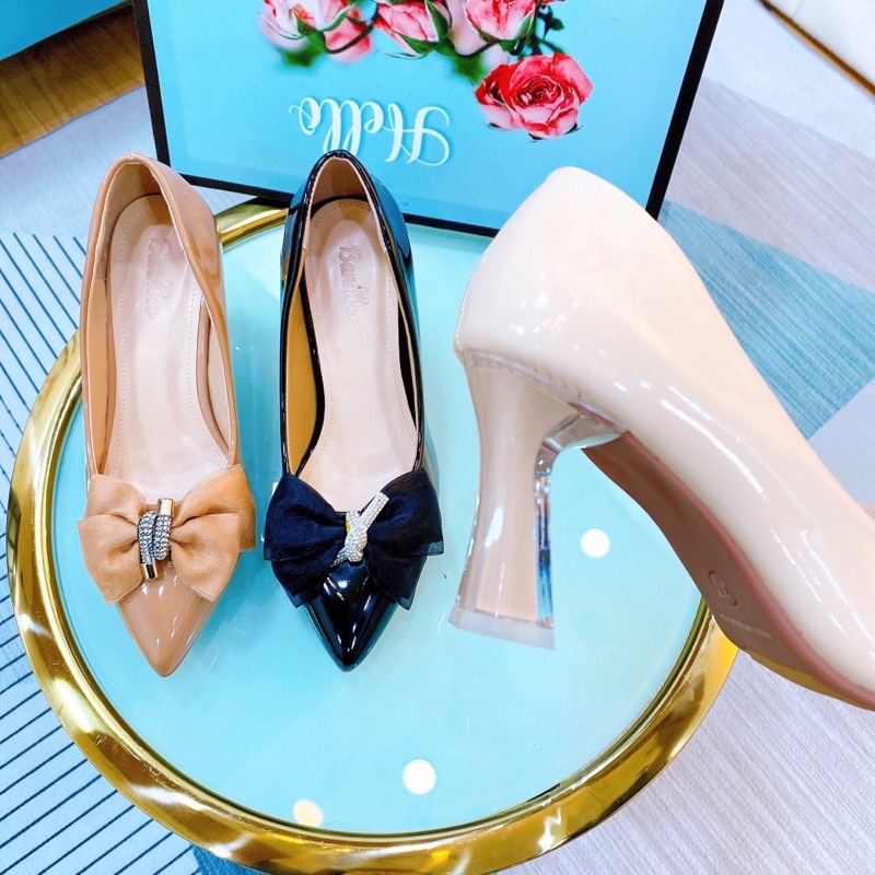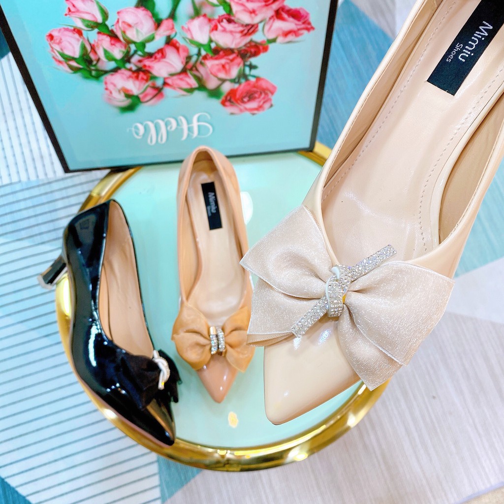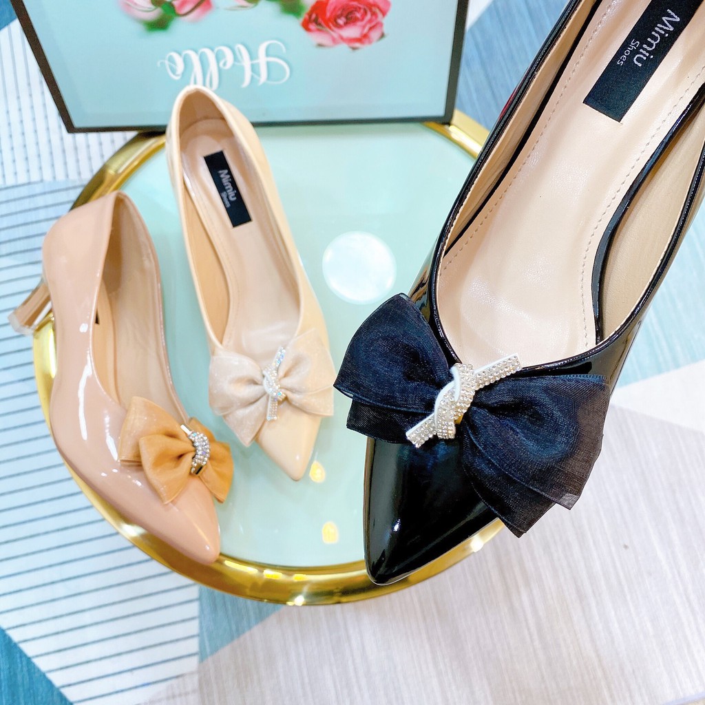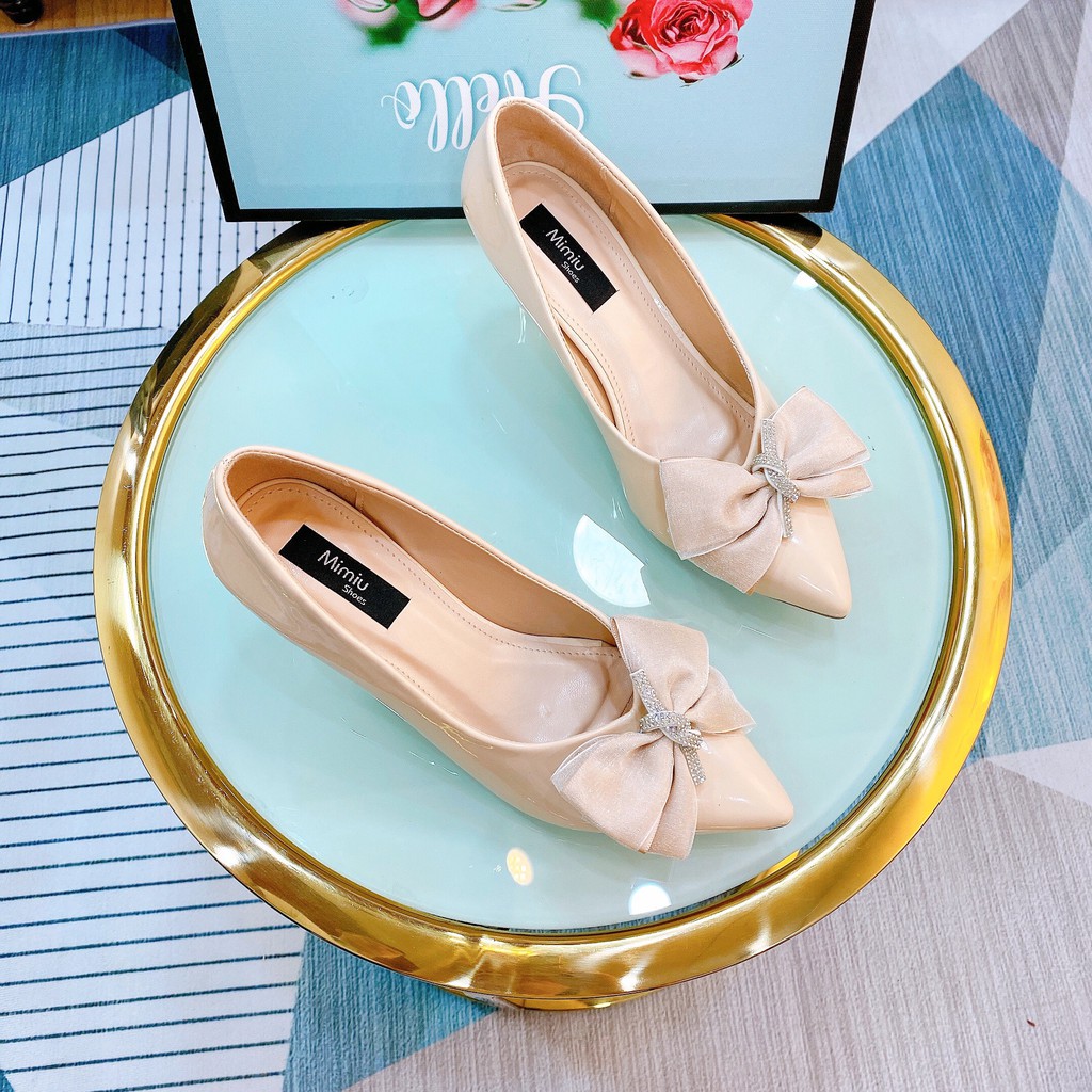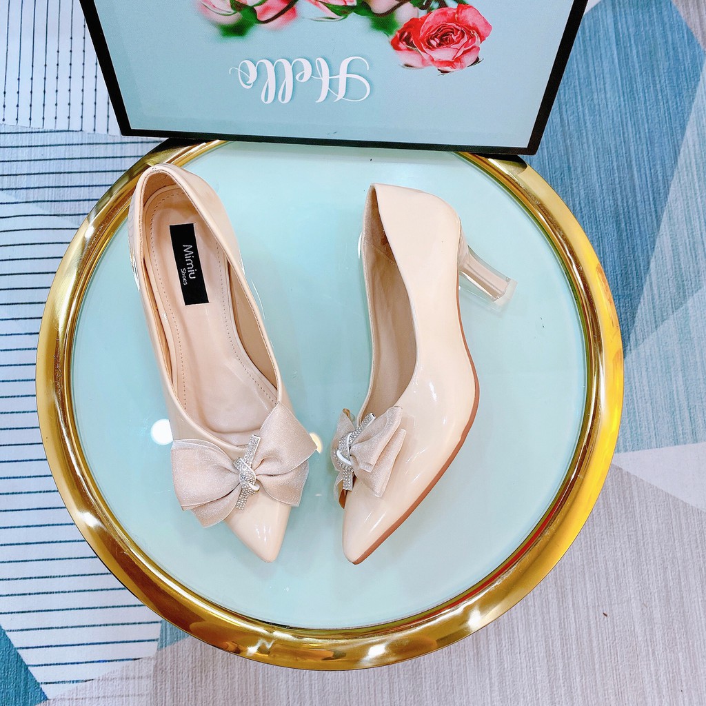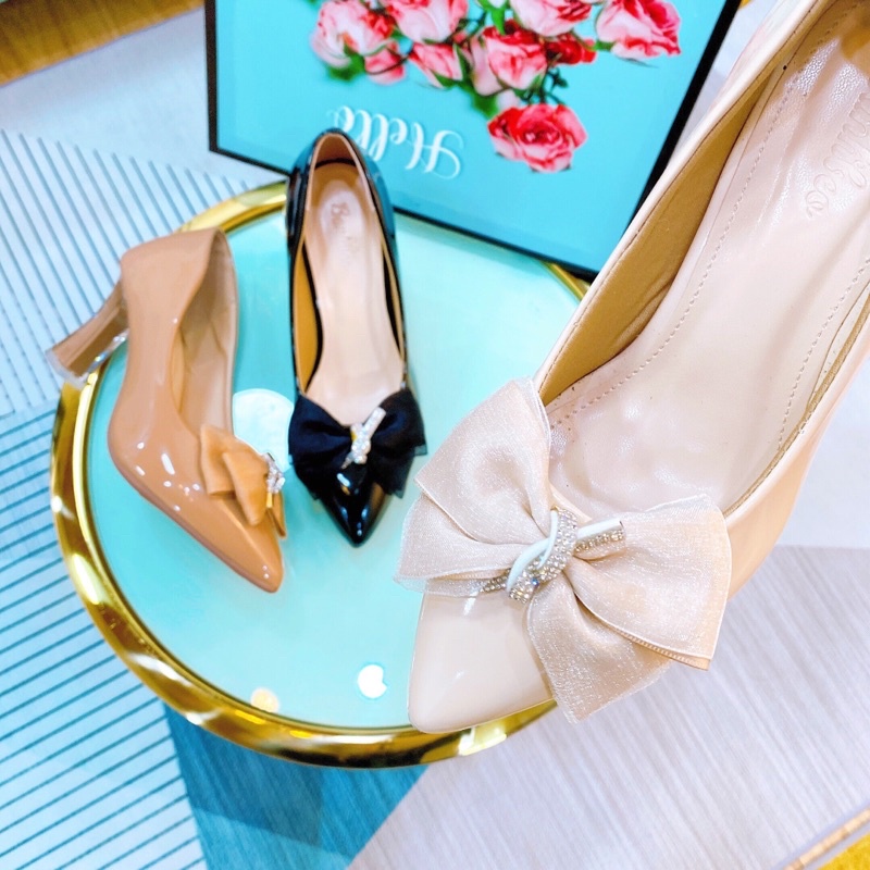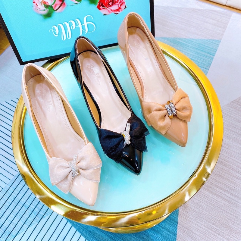 Giày bít mũi gót nhọn, có nơ xinh