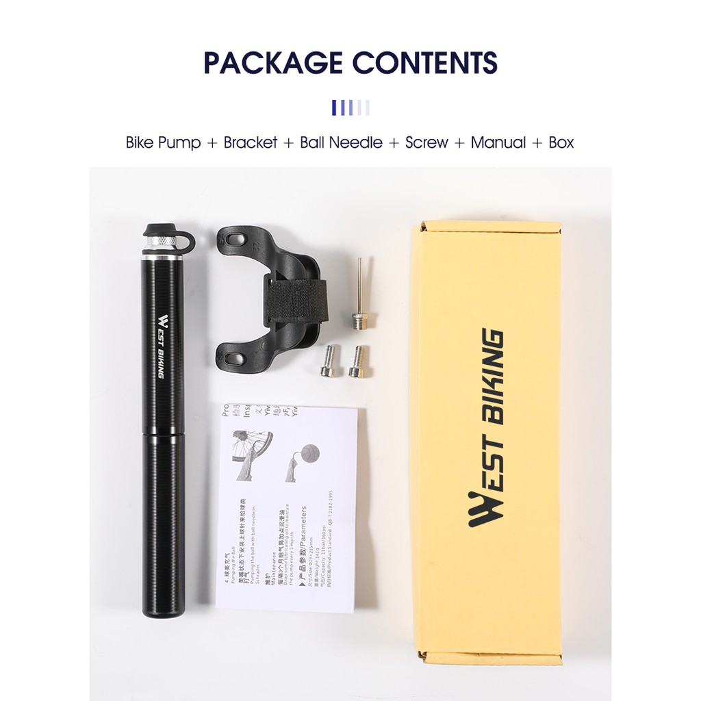 WEST BIKING Máy bơm xe đạp Mini Máy bơm xe đạp 130PSI Máy bơm cầm tay cầm tay áp suất cao Xe đạp đường núi Bóng rổ Khẩn cấp Đi xe đạp Phụ kiện xe đạp