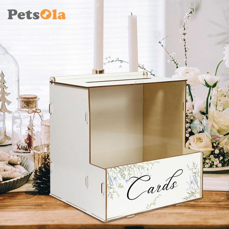 Hộp đựng thiệp cưới bằng gỗ có khe cắm, Hộp đựng tiền phong bì sành điệu có máng hoa để tốt nghiệp, đính hôn, trang trí bàn