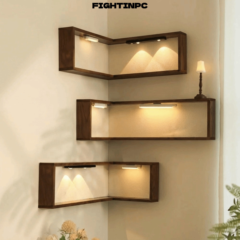 Giá sách góc FIGHTINPC, Kệ nổi Giá treo tường góc treo tường, Tiết kiệm không gian Kệ trưng bày bằng gỗ treo 90 độ Tổ chức treo tường