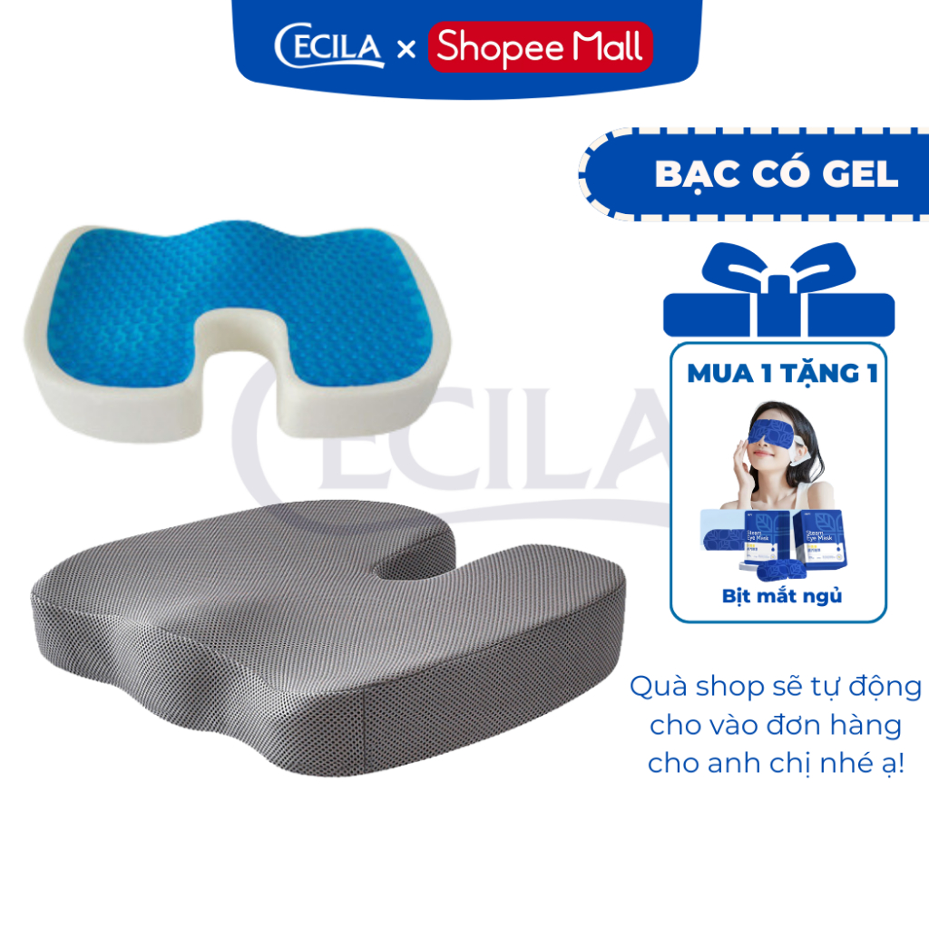 Đệm lót ghế chống đau xương cụt CECILA, ruột cao su non đàn hồi cực tốt, có gel lạnh làm mát