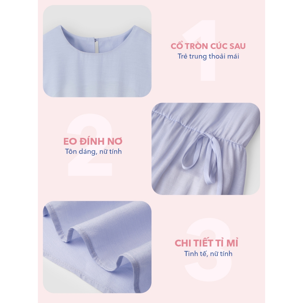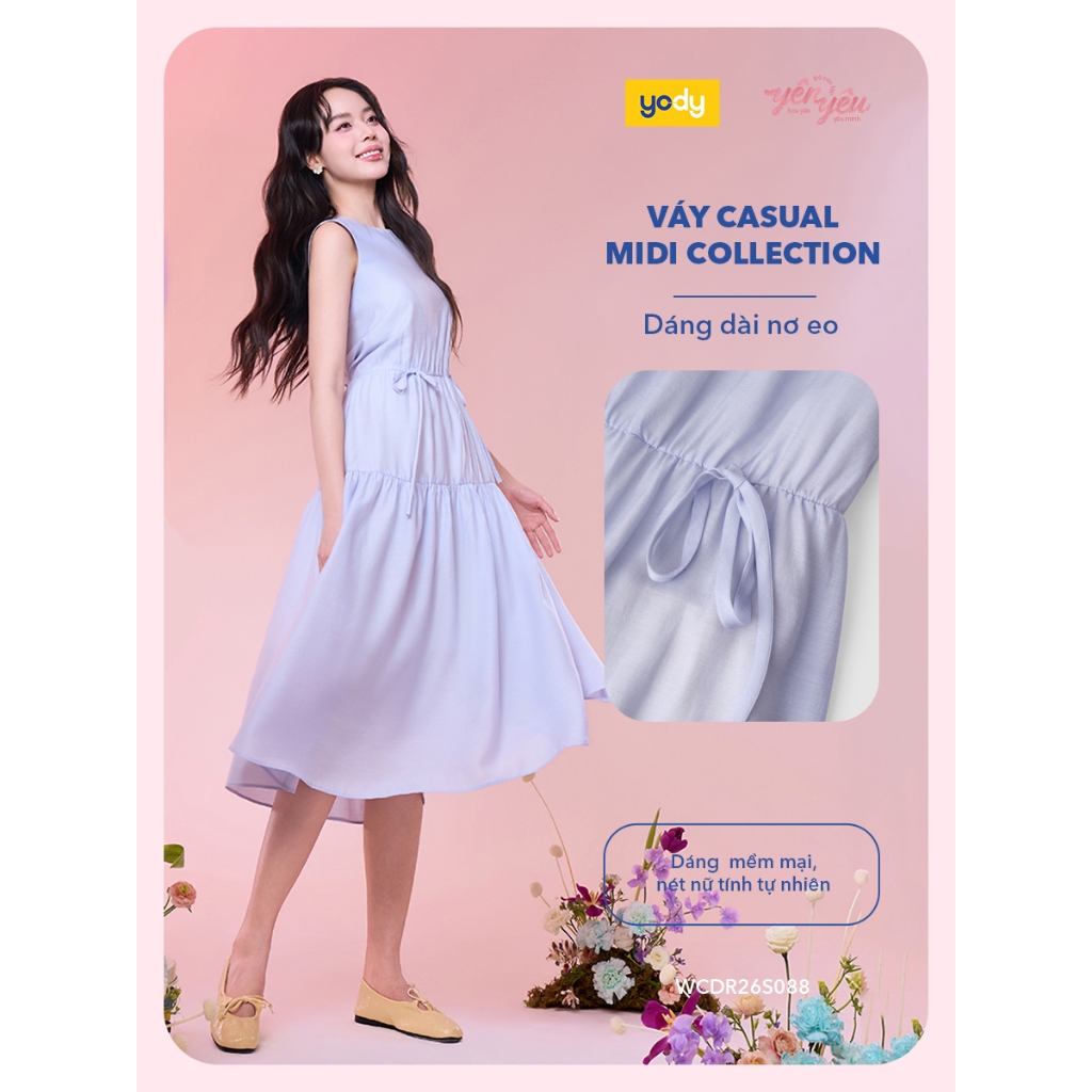 [THANH THỦY x YODY] Váy midi cổ tròn YODY nhúng tầng dáng dài rút eo vintage chất Chiffon Naia WCDR26S088