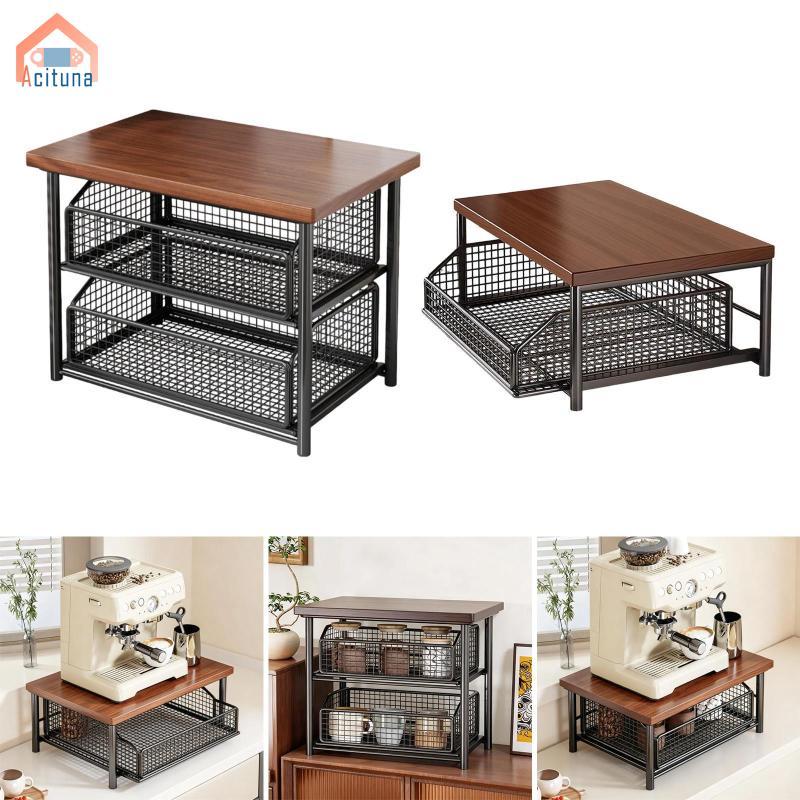 Quầy Bar cà phê, Giá đỡ cà phê, Giá đỡ đa chức năng có ngăn kéo mịn Kệ quầy bếp cho ký túc xá túi trà