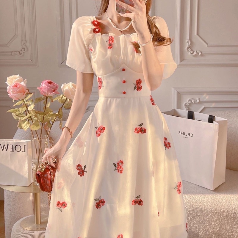 váy voan trắng hoa phong cách tiểu thư dự tiệc thời trang hè 2022
