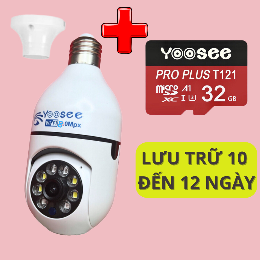 Camera Yoosee bóng đèn thế hệ mới 8.0MP - xoay 360 độ, xem đêm có màu, mẫu mới MÃ BÓNG ĐÈN