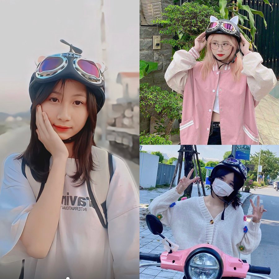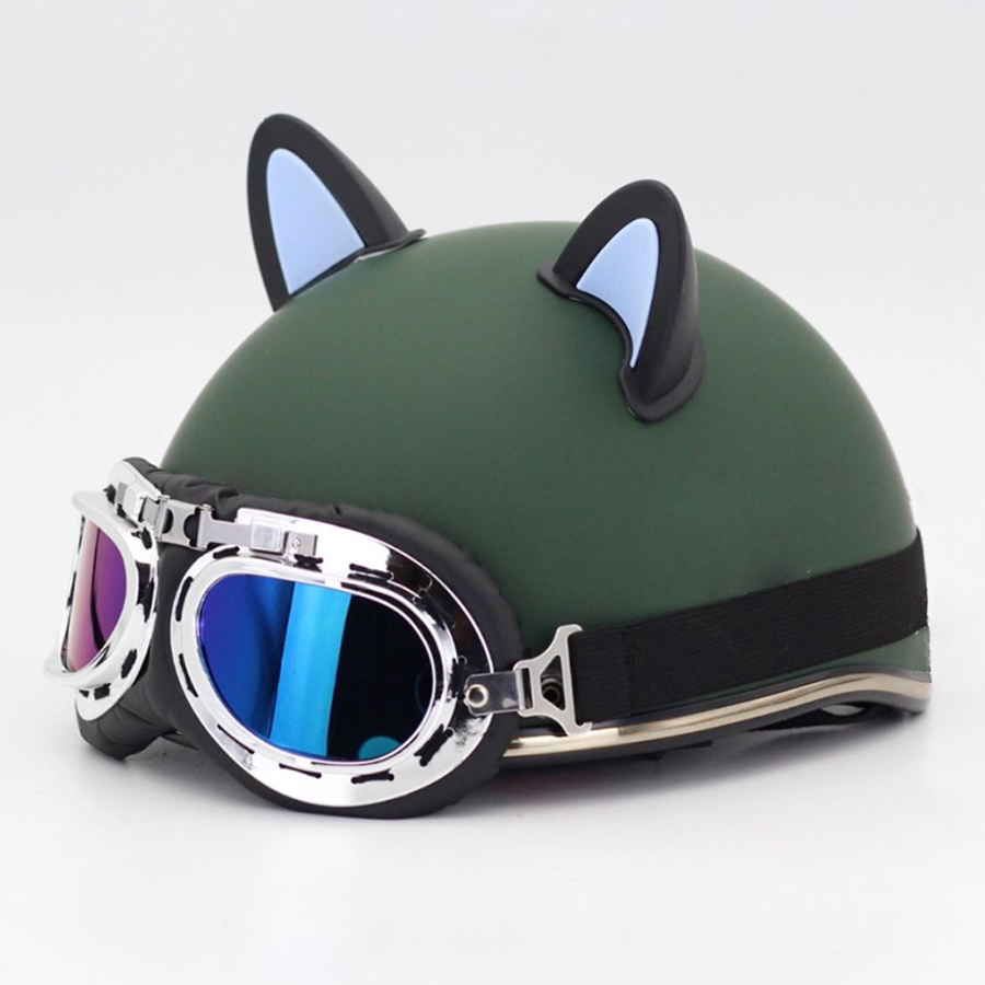 Mũ Bảo Hiểm Nửa Đầu Kính Phi Công Kèm Tai Mèo 2 Màu Dễ Thương Nhiều Màu Lựa Chọn-Đạt Chuẩn CR