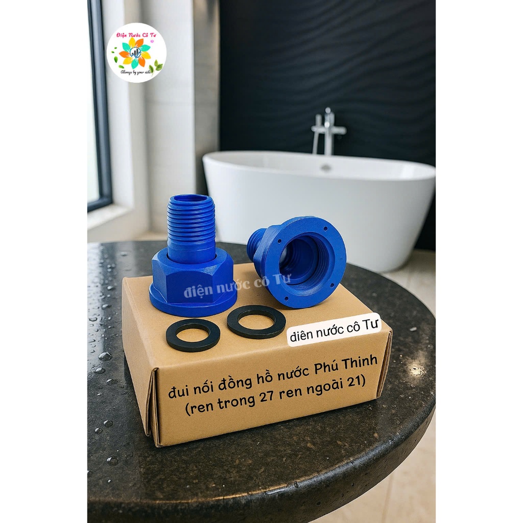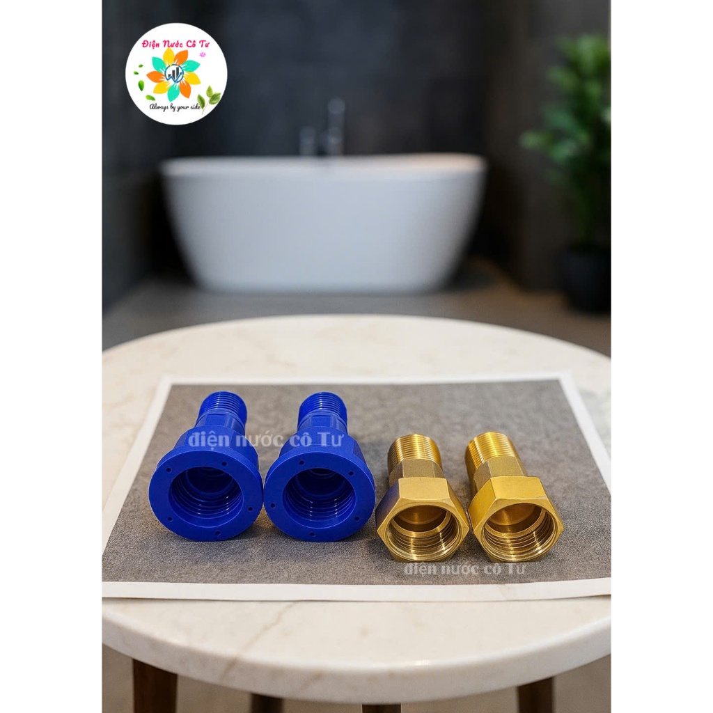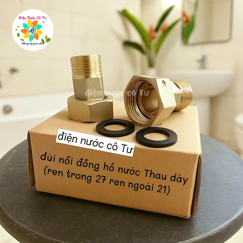 (phân loại 1 cặp, 3 cặp) Đầu nối ren cho đồng hồ nước kim loại và nhựa (ren trong 27 ren ngoài 21)