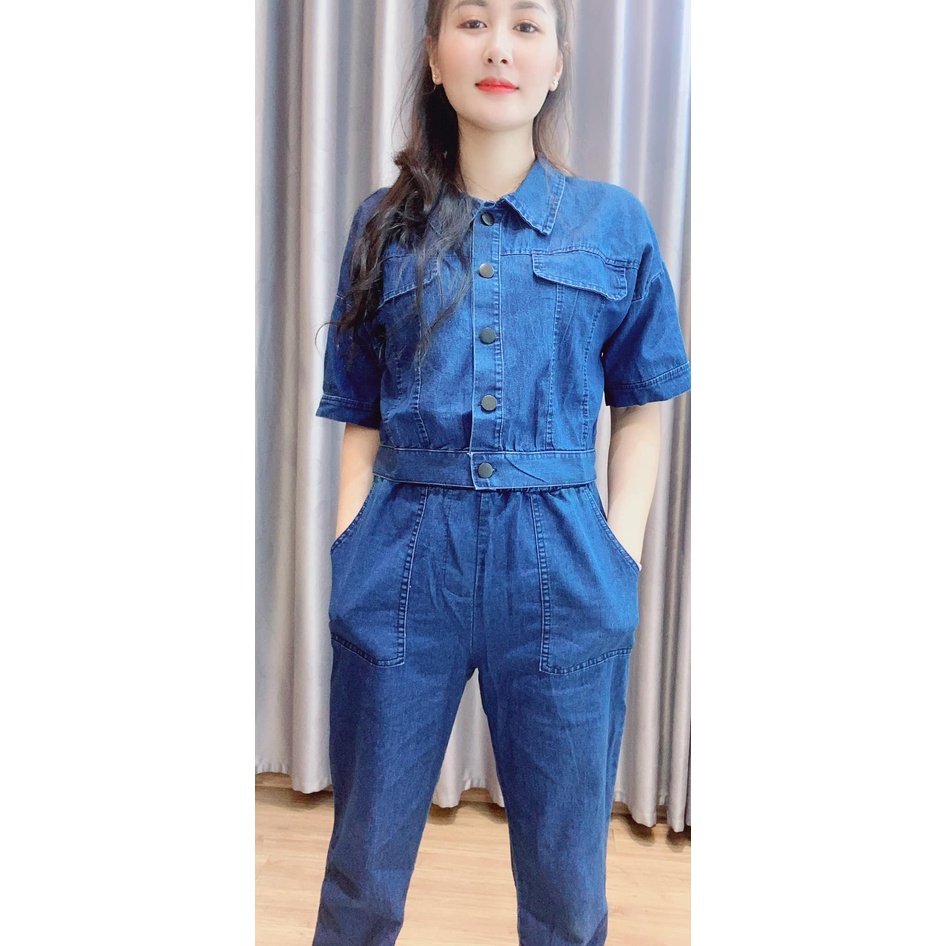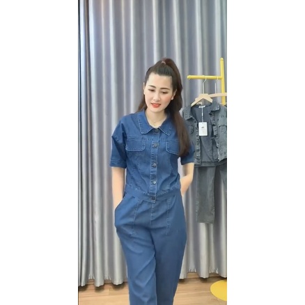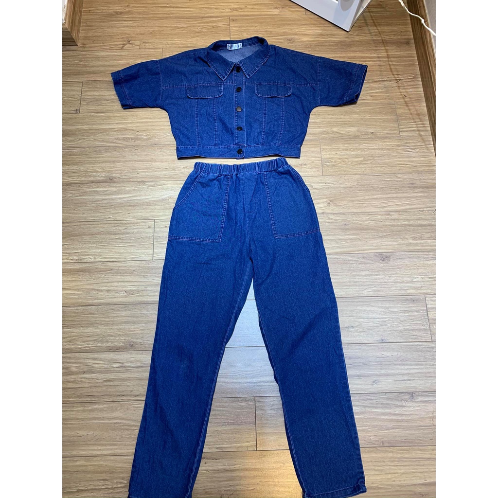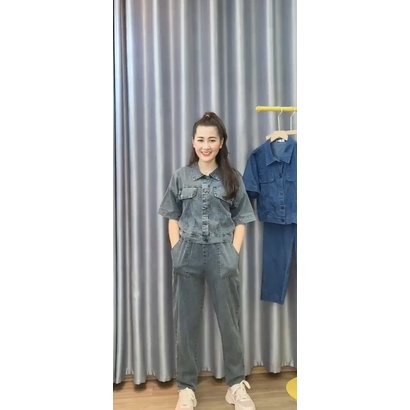 Set bò jean giấy cá tính áo croptop mix quần baggy dáng dài Kandy K2