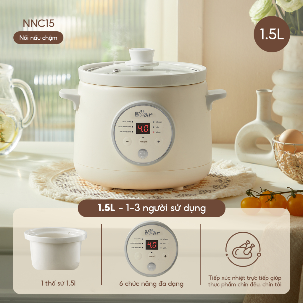 Nồi Nấu Cháo Chậm 0.8L BEAR Nồi Nấu Chậm Nồi Chưng Yến Cách Thuỷ Nồi Nấu Cháo Cho Bé Nấu Chậm Đậm Dưỡng Chất SUBE001