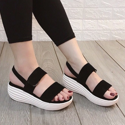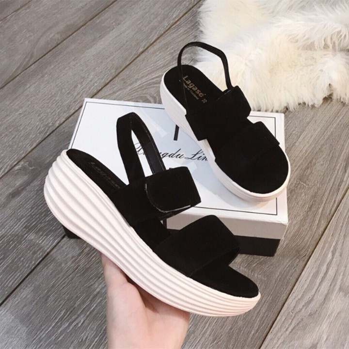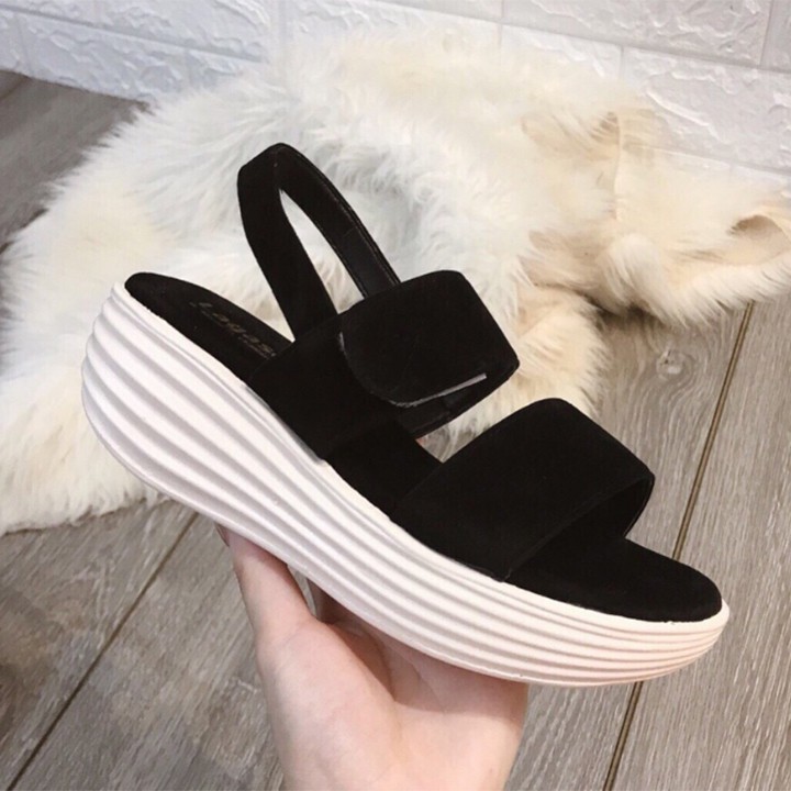 Giày sandal đế xuồng nữ 2 quai ngang đế bánh mì - LN140