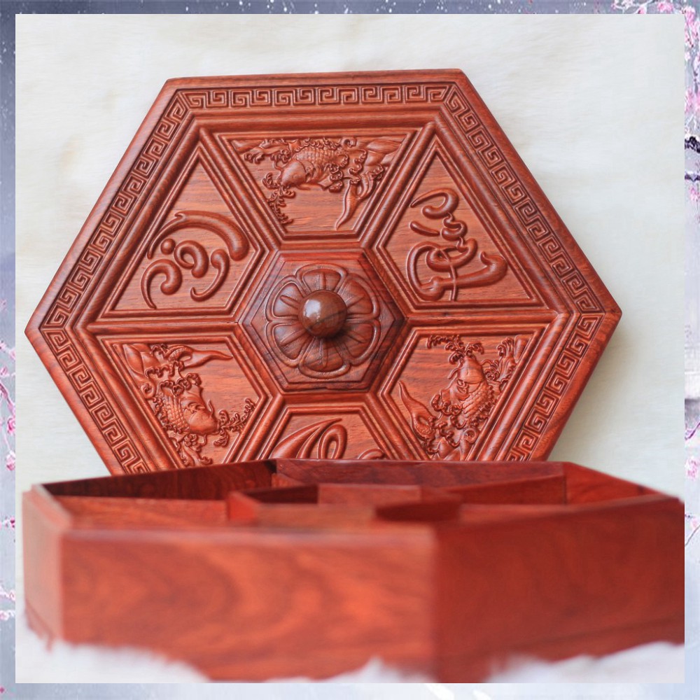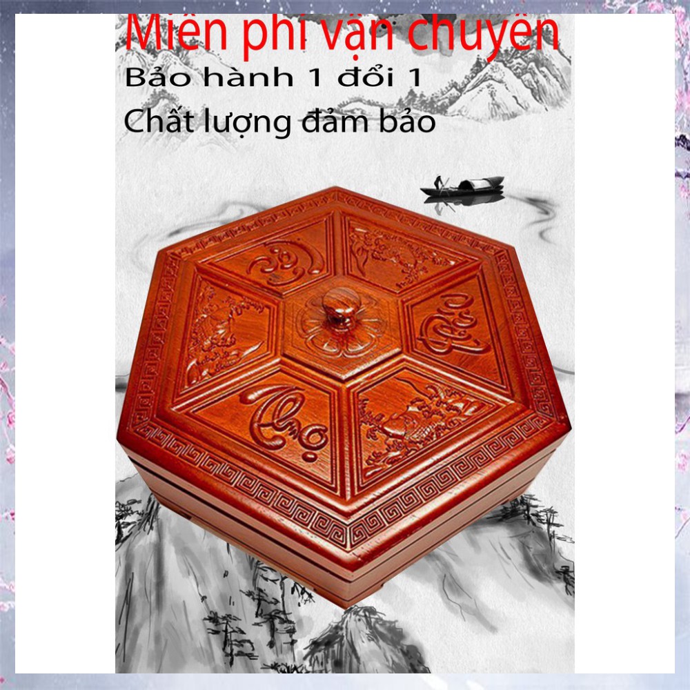 Khay đựng mứt tết sang trọng Phúc Lộc Thọ - Hộp mứt bằng gỗ hương cao cấp