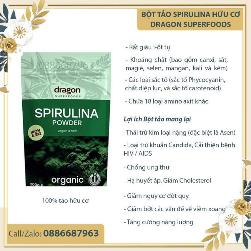 Bột tảo hữu cơ Spirulina 200g Dragon superfoods