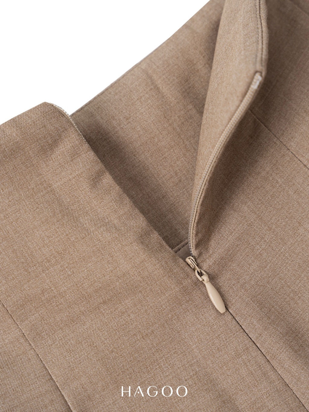 Set đồ nữ HAGOO gồm sơ mi vạt cổ phối quần suông màu nâu phong cách thanh lịch công sở [S647]
