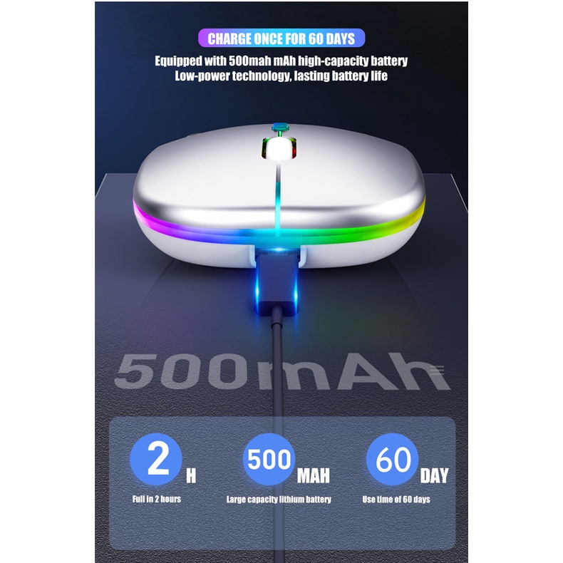 Chuột Không Dây Bluetooth Có Đèn LED RGB Cho Máy Tính