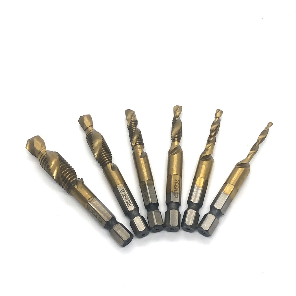 Bộ 6 Mũi Khoan Taro Ren Mạ TItan Thép Gió HSS Cao Cấp