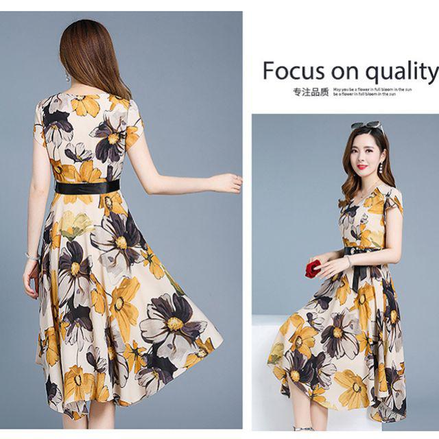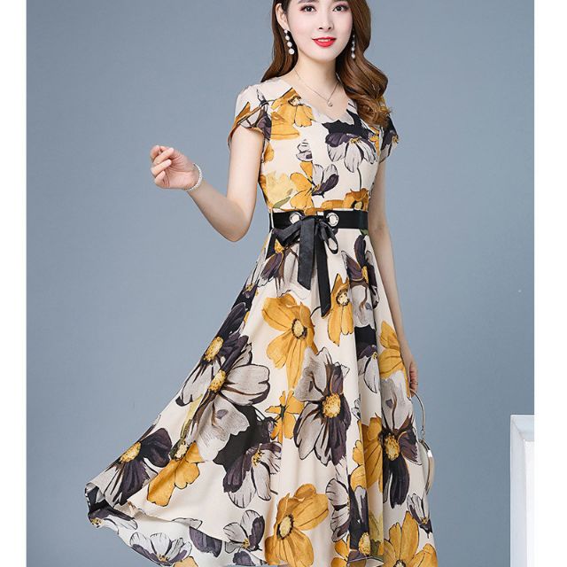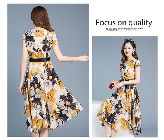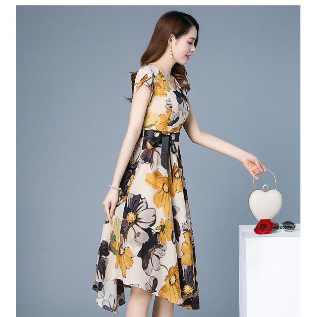 XIÊU MẪU THỜI TRANG ĐẦM XÒE CỔ TIM IN HOA KÈM THẮT LƯNG CỘT NƠ : RẺ VÔ ĐỊCH