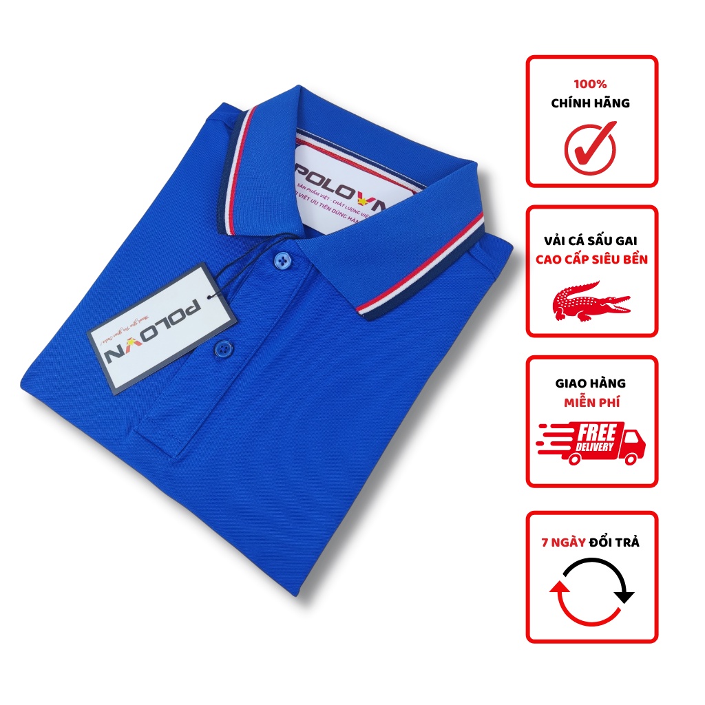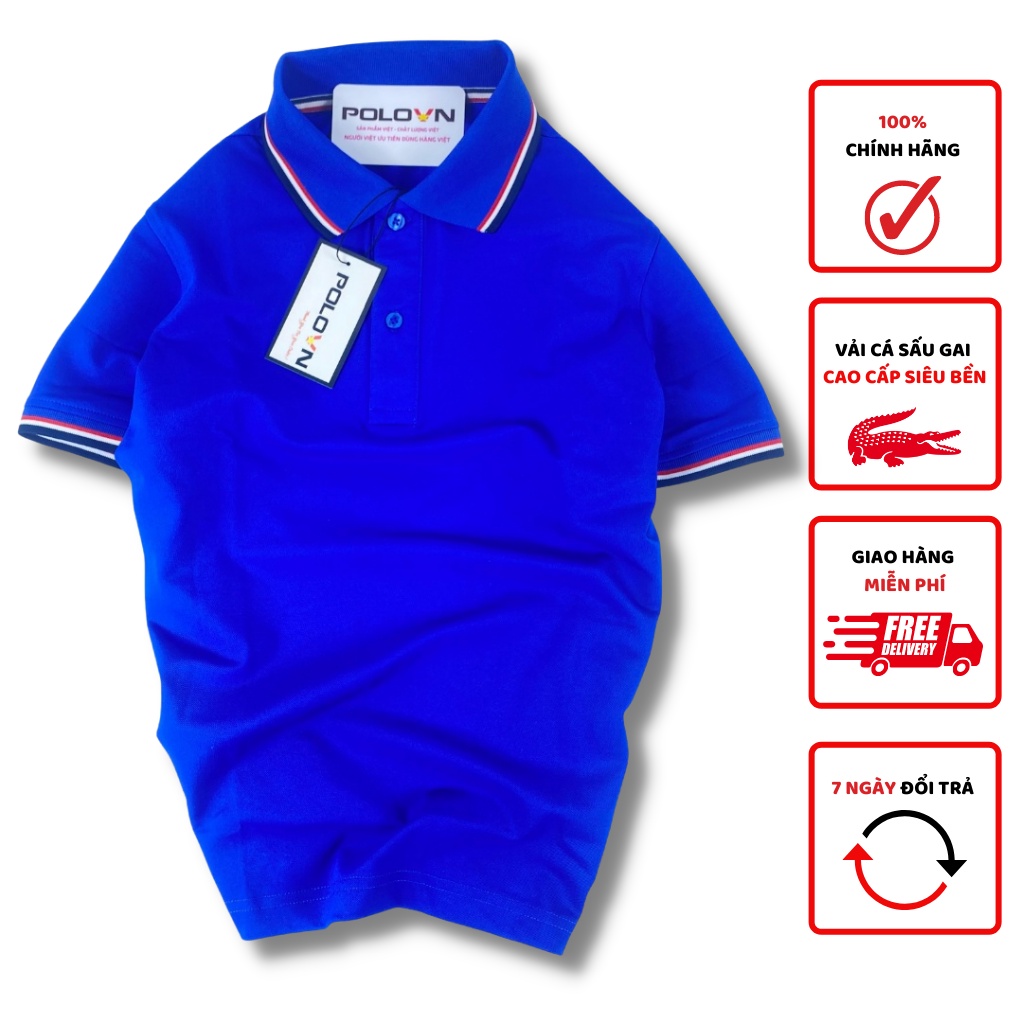 Áo thun polo nam cổ bẻ Basic màu Xanh Coban phối viền , vải cá sấu - không xù lông, không ra màu , thấm hút mồ hôi