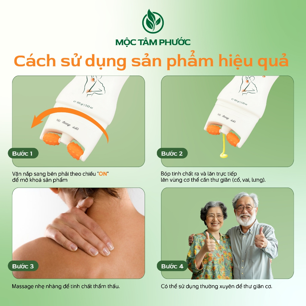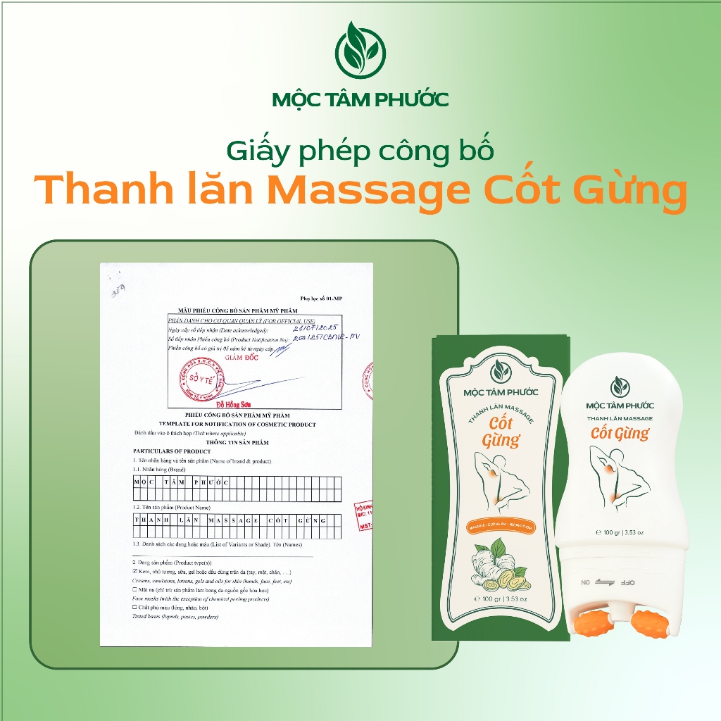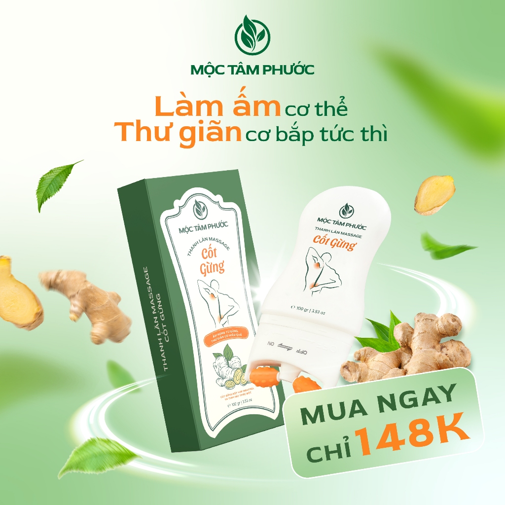 Thanh Lăn Massage Cốt Gừng Mộc Tâm Phước 100gr Hỗ Trợ Giảm Nhức Mõi Cổ Vai Gáy [Tặng Thẻ Cạo Gió]