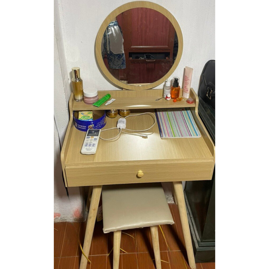 Bàn trang điểm có gương, giá để đồ và có ngăn kéo kêt hợp làm bàn học, bàn làm việc