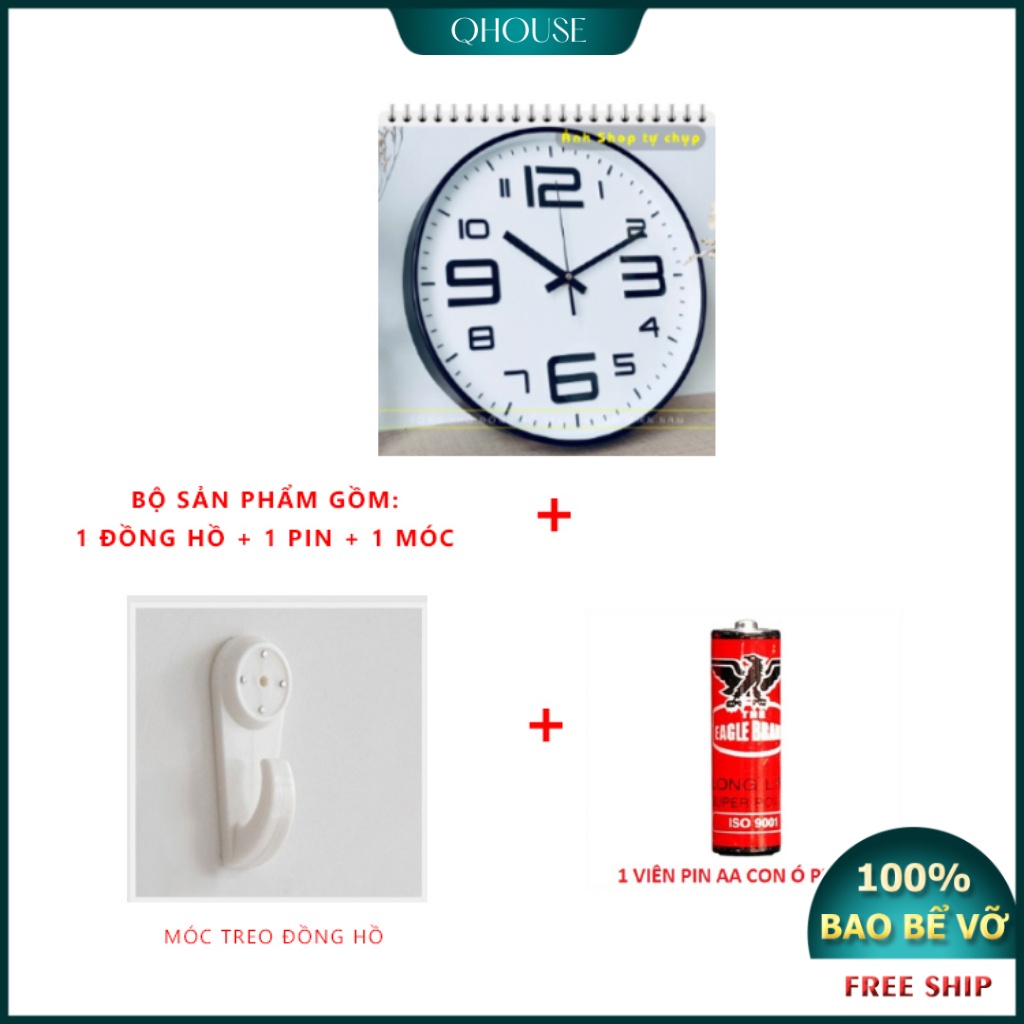 [35 CM MÀU GOLD ] Đồng hồ treo tường kim trôi Qhouse, Đồng hồ trang trí decor đẹp sang trọng cao cấp