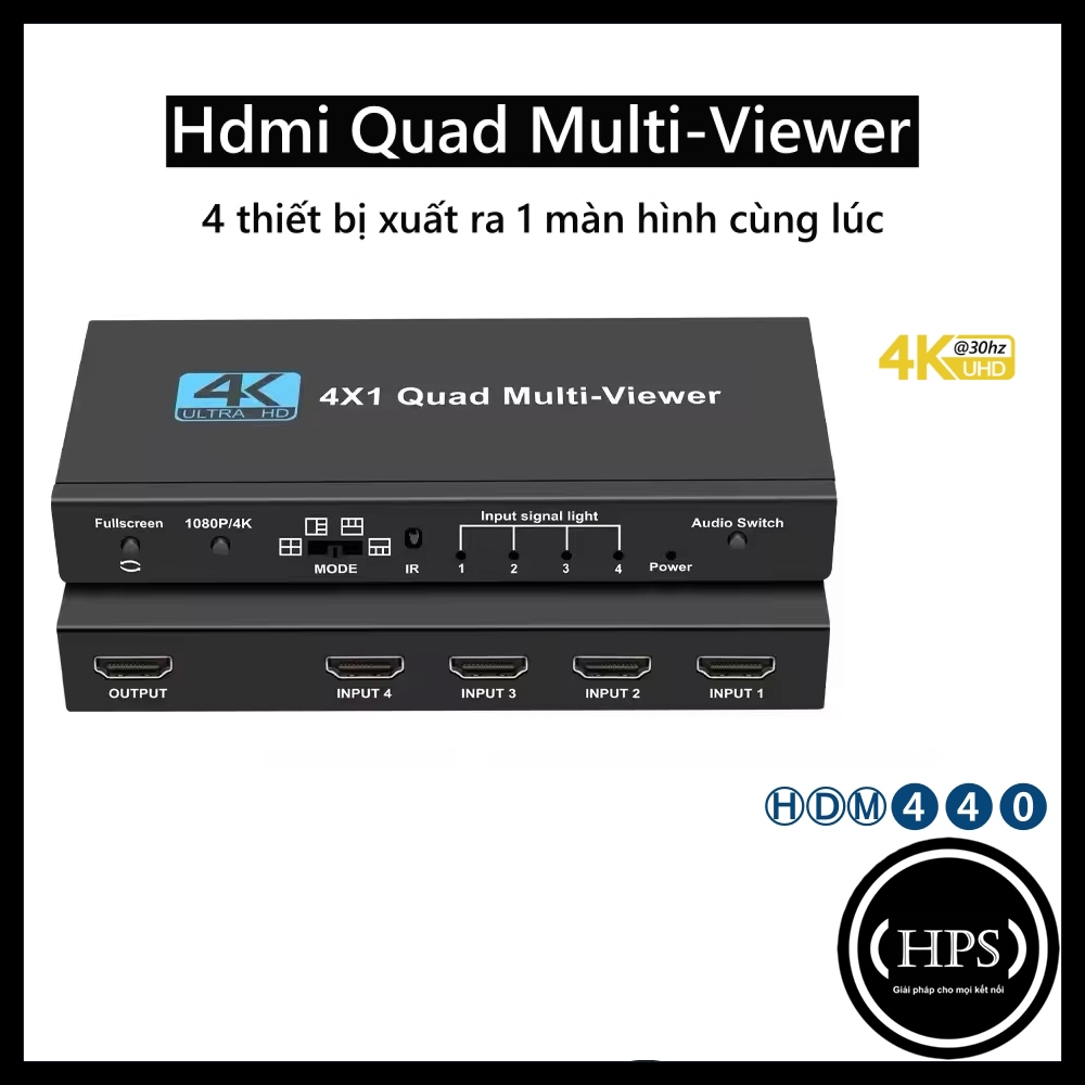 Bộ gộp HDMI ra 4 màn hình cùng lúc Multi Viewer, 4 thiết bị hiển thị chung 1 màn hình - HPS HDM440