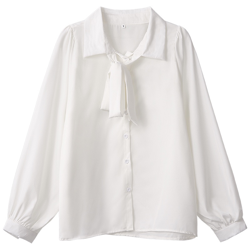 Áo Sơ Mi Trắng Dài Tay Phối Nơ Xinh Xắn Dành Cho Nữ