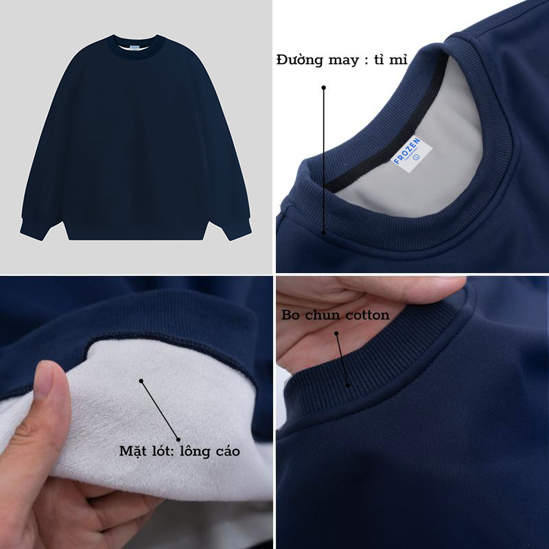 Áo Sweater Nỉ Lông Cáo Frozen Trơn Basic Form Rộng Mềm Mịn Dày Dặn Predium Unisex Nam Nữ