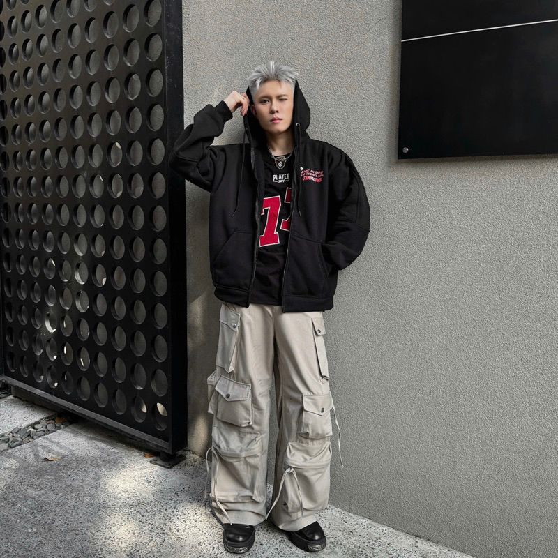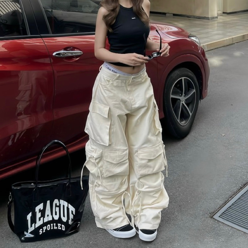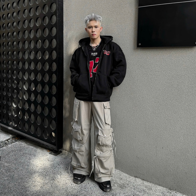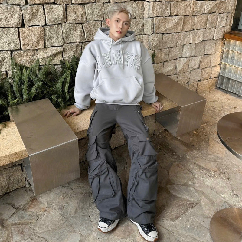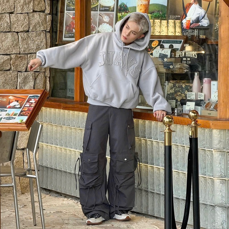 QUẦN CARGO PANTS TEN BOX - Quần Kaki HUGU 12 túi hộp màu ĐEN/XÁM/KEM dài suông ống rộng form nam nữ unisex Jaystoree.pn