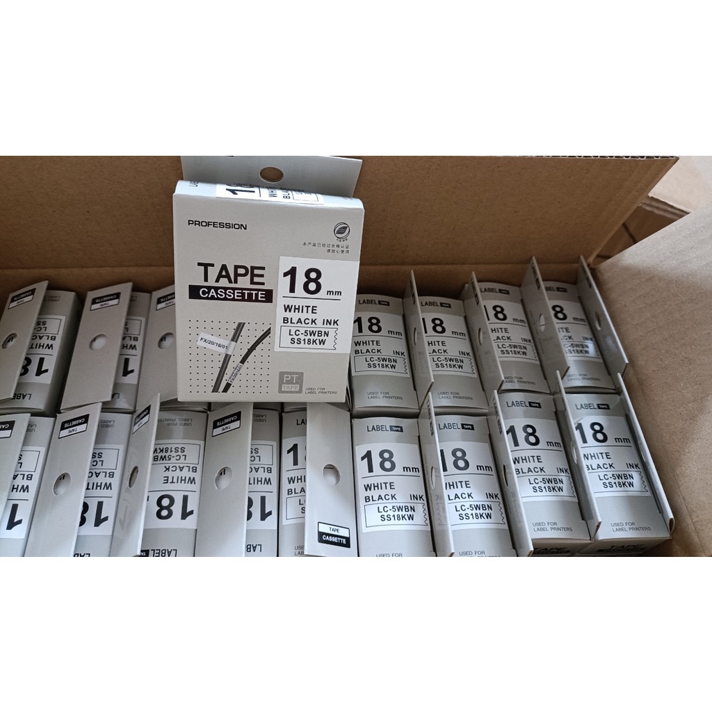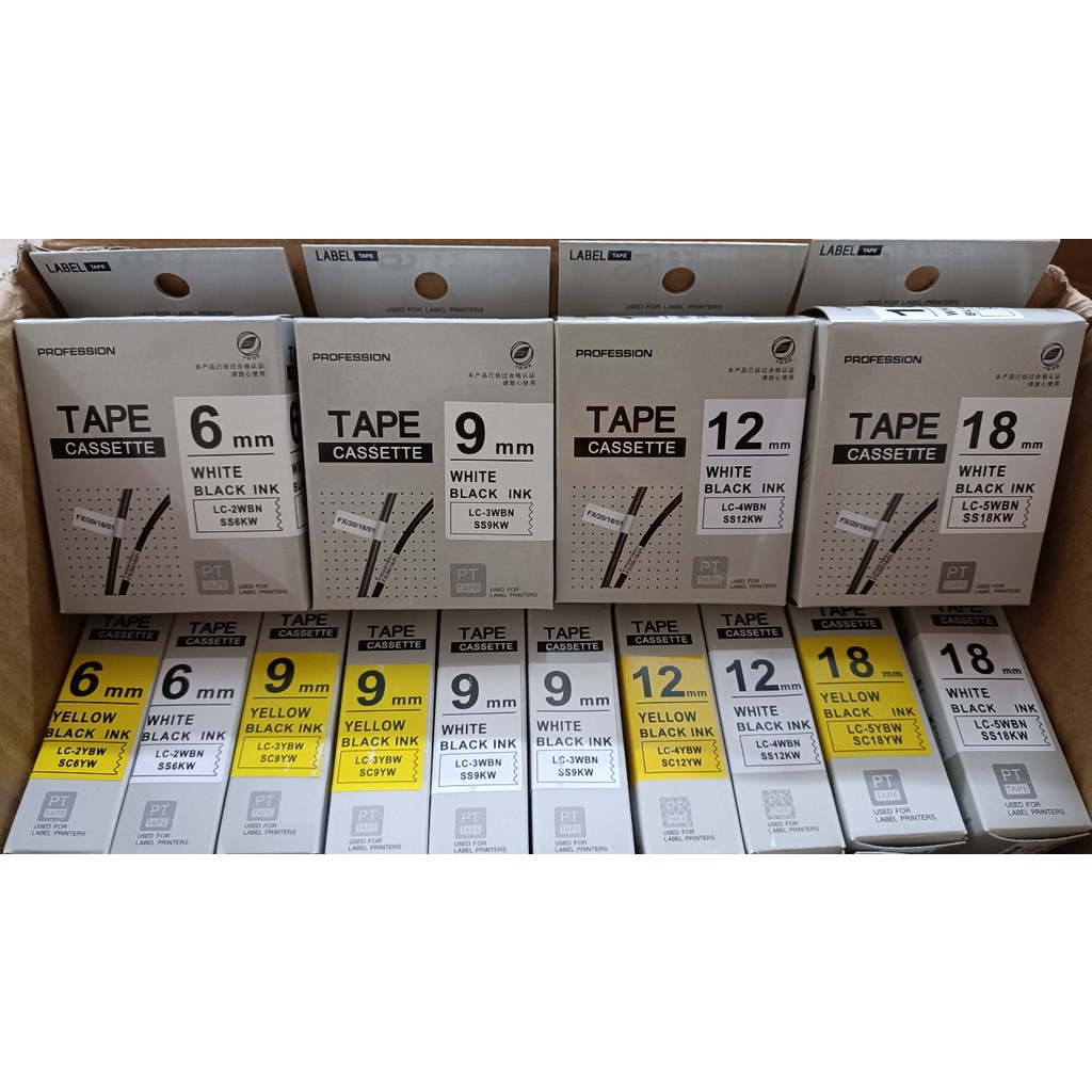 Băng mực in nhãn (có hdon VAT) cỡ 6mm,9mm,12mm,18m tương thích dùng cho máy TEPRA King Jim và Espon Lable works