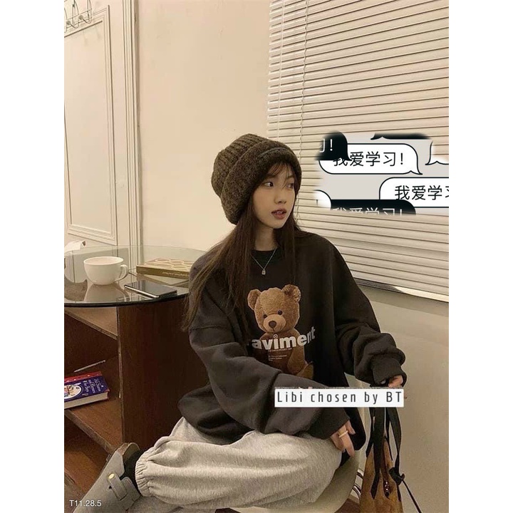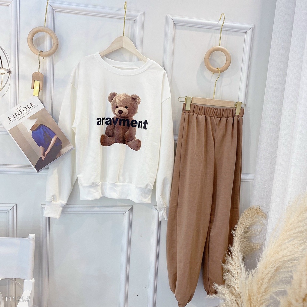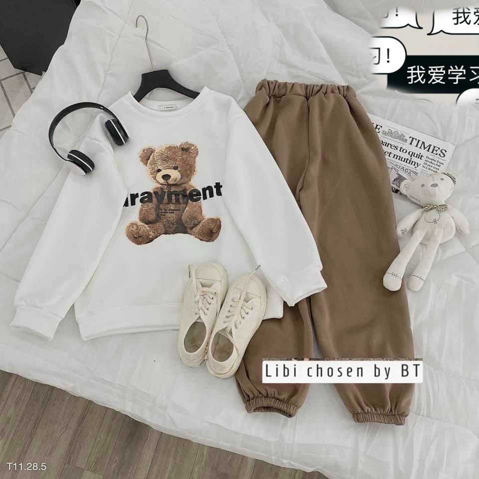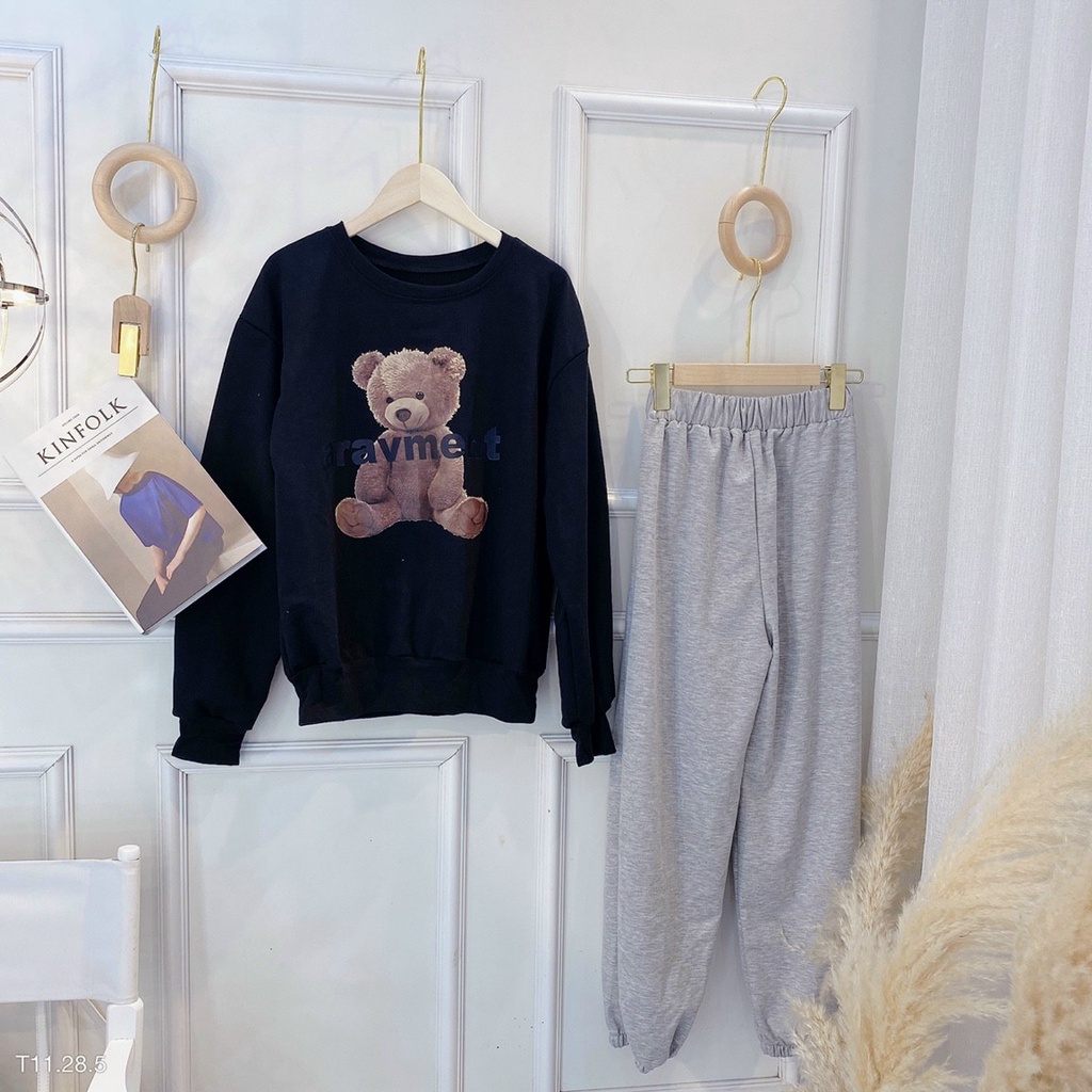 Sét bộ thun nữ quần dài áo dài tay họa tiết gấu, đồ bộ nữ dài tay mùa đông