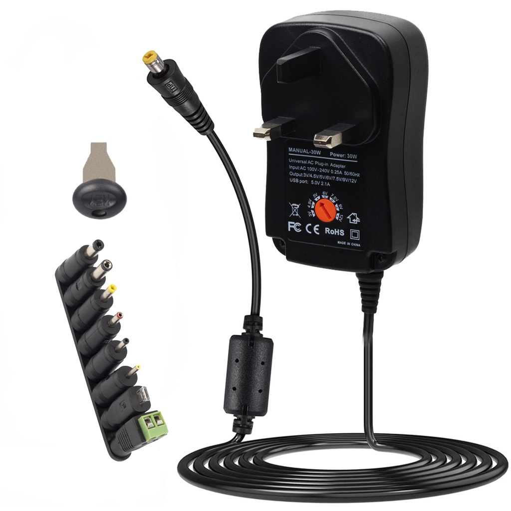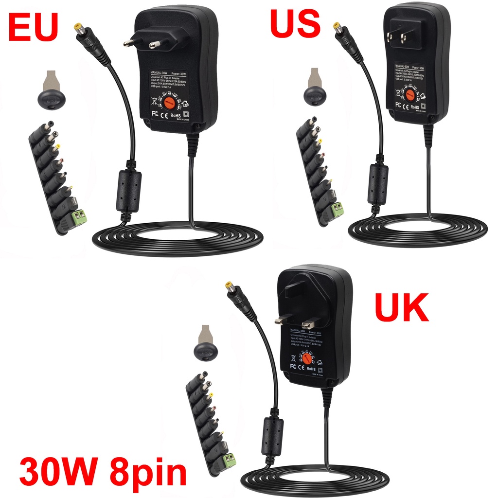 30W Universal Adjustable Power Adapter Charger Bộ đổi nguồn có thể điều chỉnh đa năng 30W AC To DC Plug 3V 4.5V 5V 6V 7.5V 9V 12V 2.5A 2500mA Multifunction Power Supply Driver + USB P