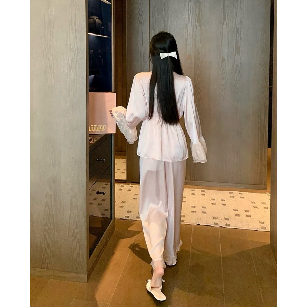 #TP12 Set 3 Món Đồ Ngủ, Đồ Mặc Nhà Lụa Phối Lưới Hoạ Tiết Hoa Tiểu Thư
