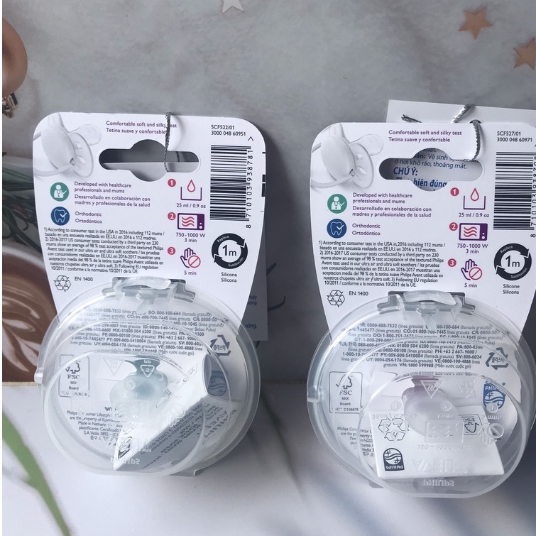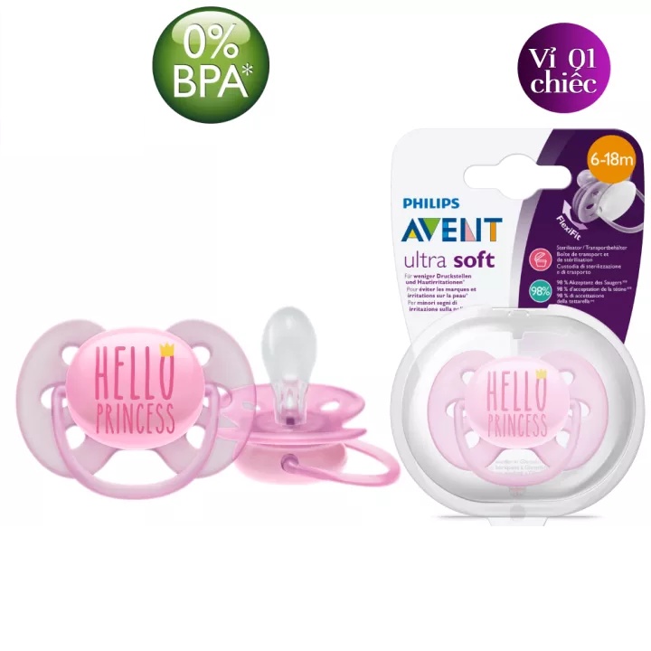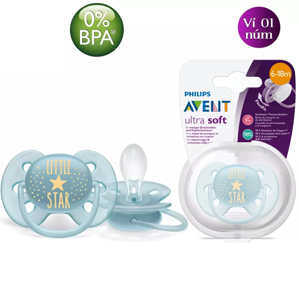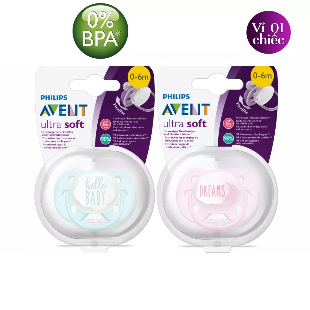 Núm ti giả Philips Avent Ty ngậm Avent Ultra Soft Siêu Mềm Thông Khí Có Chỉnh Nha, Giúp Bé Tự Ngủ, Vỉ Đơn