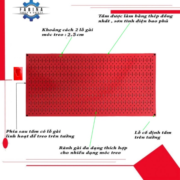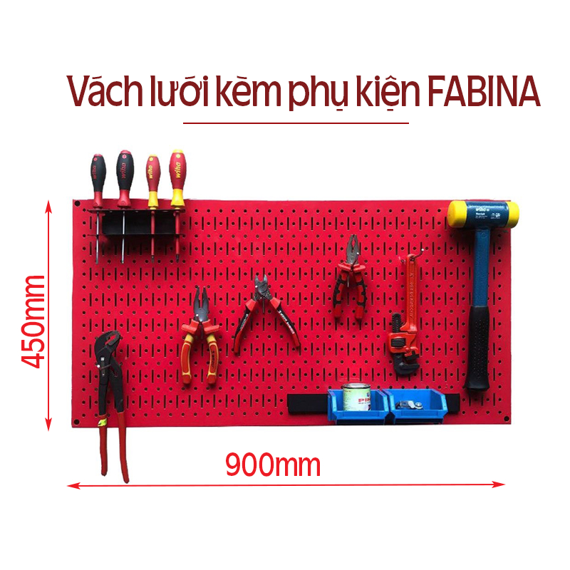 Tấm lưới Pegboard màu đỏ kèm phụ kiện treo FABINA