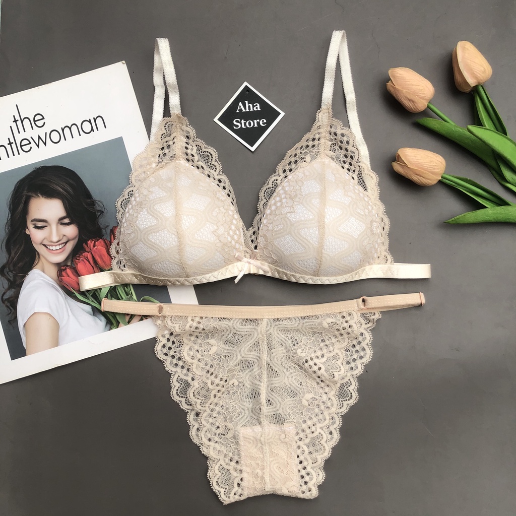 Bộ đồ lót nữ đệm mỏng không gọng chất Ren mềm mại thoáng mát YiOn Underwear SETBRA01