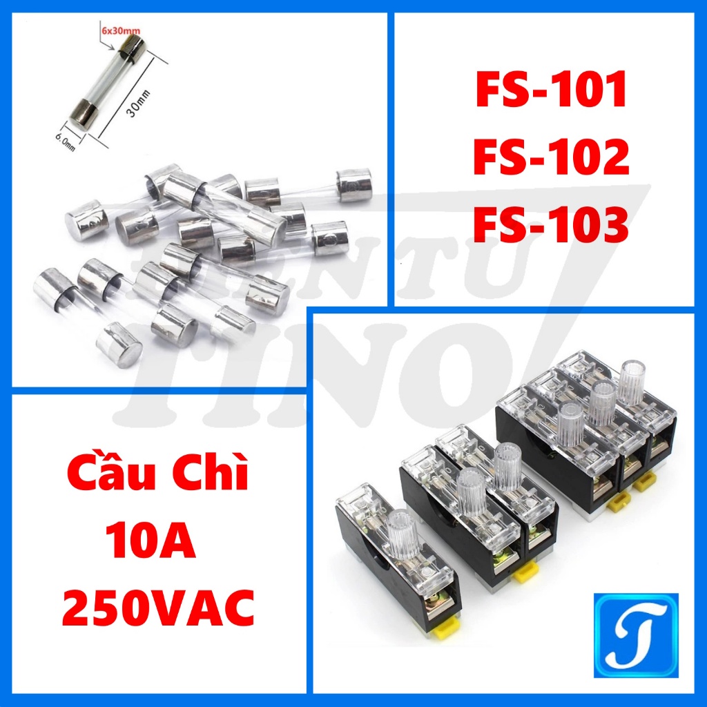 Bộ Đế Và Cầu Chì FS-101 10A 250V AC Kính Trắng Có Đèn Dạng Hộp, Cầu Chì Ống 6x30mm , Khay Fuse FS101 FS102 103 Tủ Điện