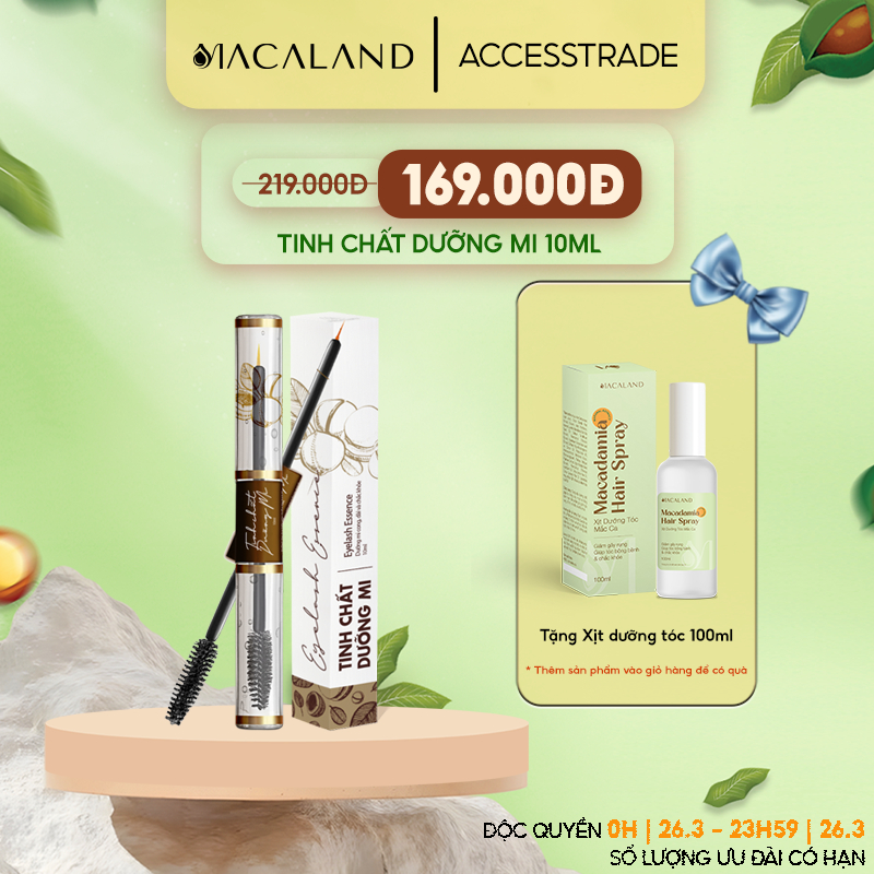 Tinh chất dưỡng mi dài cong chỉ sau 2 TUẦN 10ml MACALAND từ Đậu Xanh, Dầu Mắc Ca, Cỏ Ba Lá Đỏ