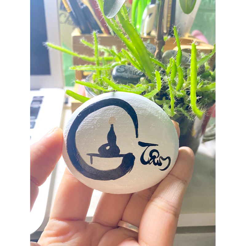 Chữ TỊNH vẽ thư pháp trên đá cuội handmade, trang trí, chặn giấy, decor, quà tặng ý nghĩa, Viên đá nhỏ art, đá biết ơn.