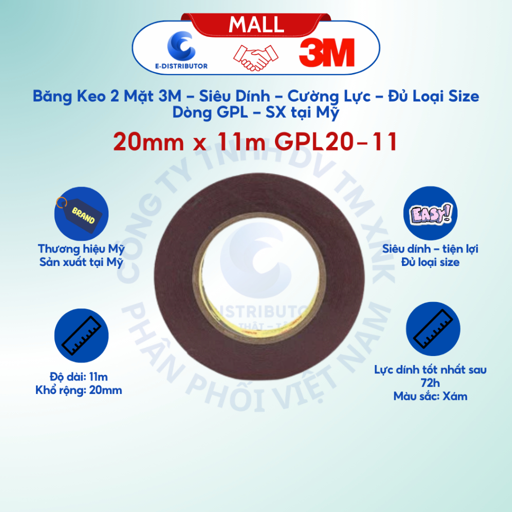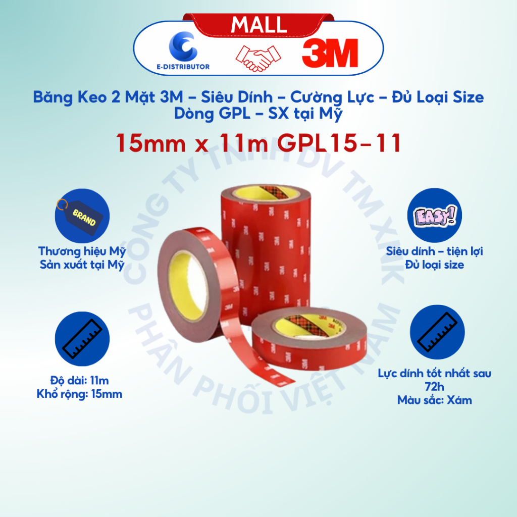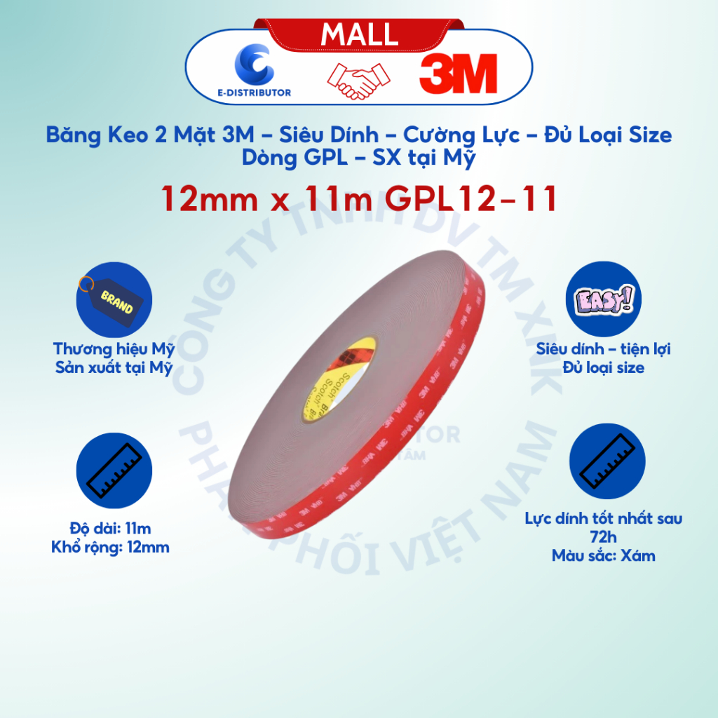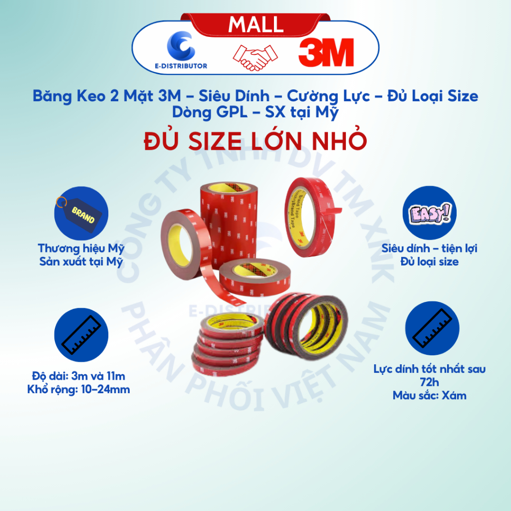 Băng keo 2 mặt 3M - Dòng GPL, Siêu dính, Cường lực, Đủ loại Size - Hành chính hãng