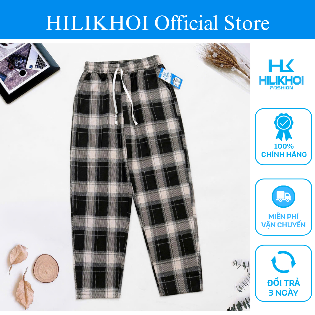 Quần Dài Nữ HILIKHOI Dáng Ống Baggy Kẻ Caro , Chất Dạ Umi Cao Cấp Mùa Đông