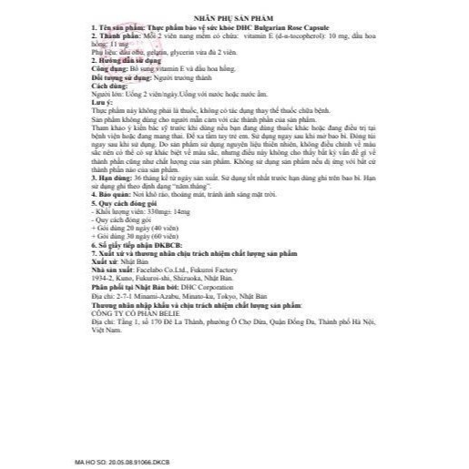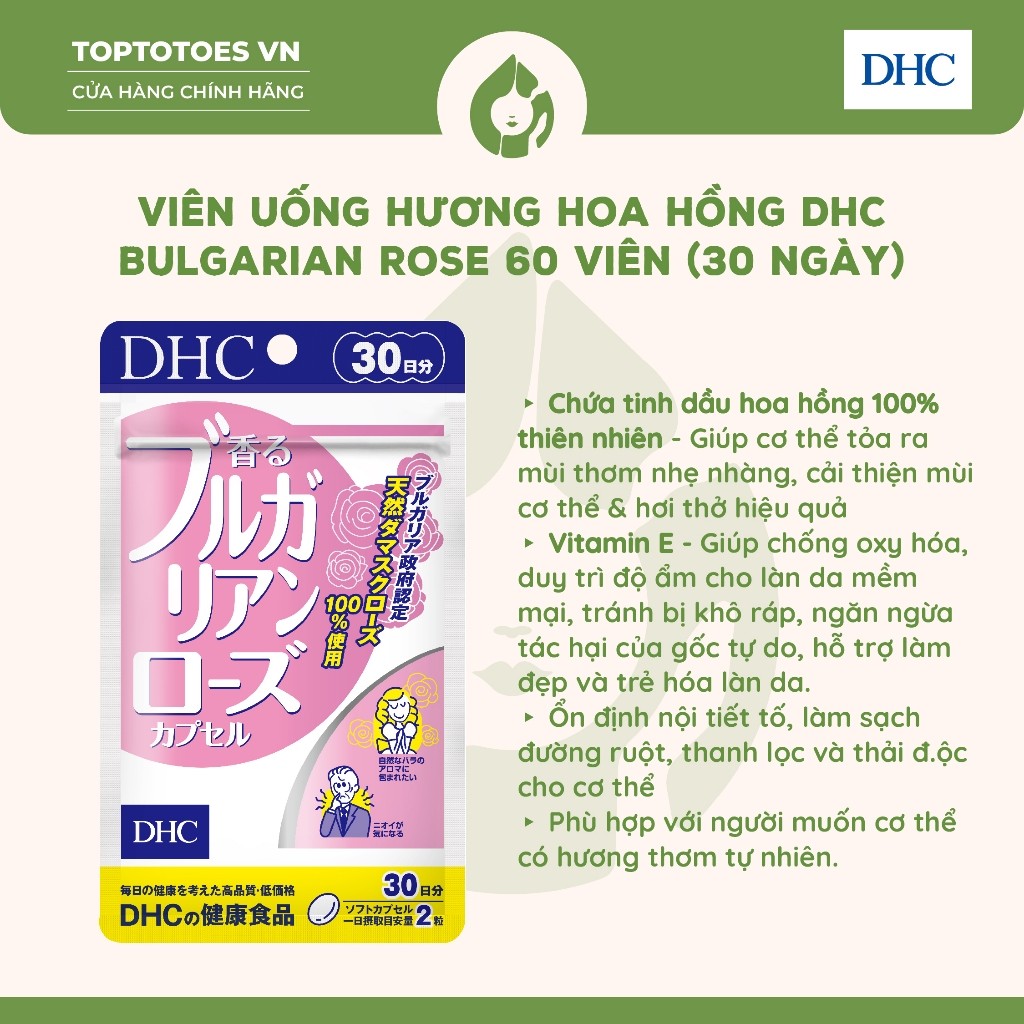 Viên uống làm thơm cơ thể DHC Bulgarian Rose giúp ngăn mùi, toả hương hoa hồng tự nhiên 60 viên (30 ngày)