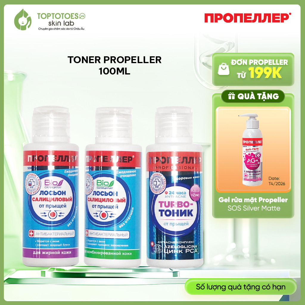 [HÀNG NHẬP KHẨU] Toner Propeller giảm viêm, mụn, tiêu mủ, giảm dầu nhờn - 60ml/100ml