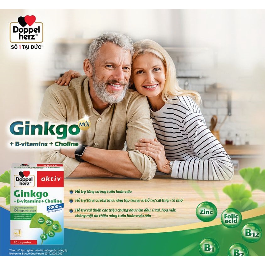 Viên uống bổ não Doppelherz Ginkgo hỗ trợ tăng cường tuần hoàn não và cải thiện trí nhớ (Hộp 30 viên)