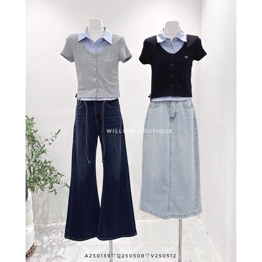 𝐖𝐢𝐥𝐥𝐢𝐚𝐦 𝐁𝐨𝐮𝐭𝐢𝐪𝐮𝐞 - Váy jean suông xanh wax 50051