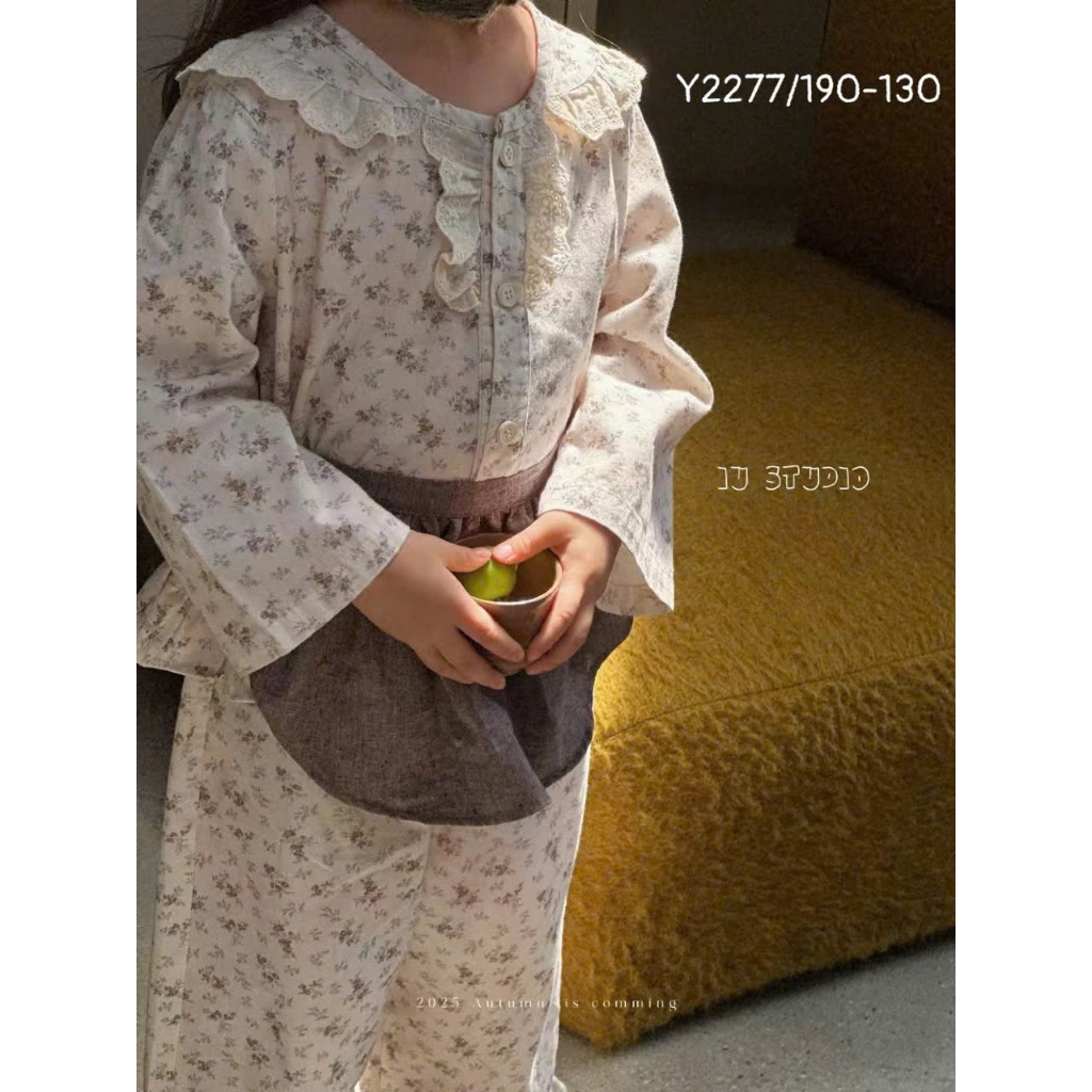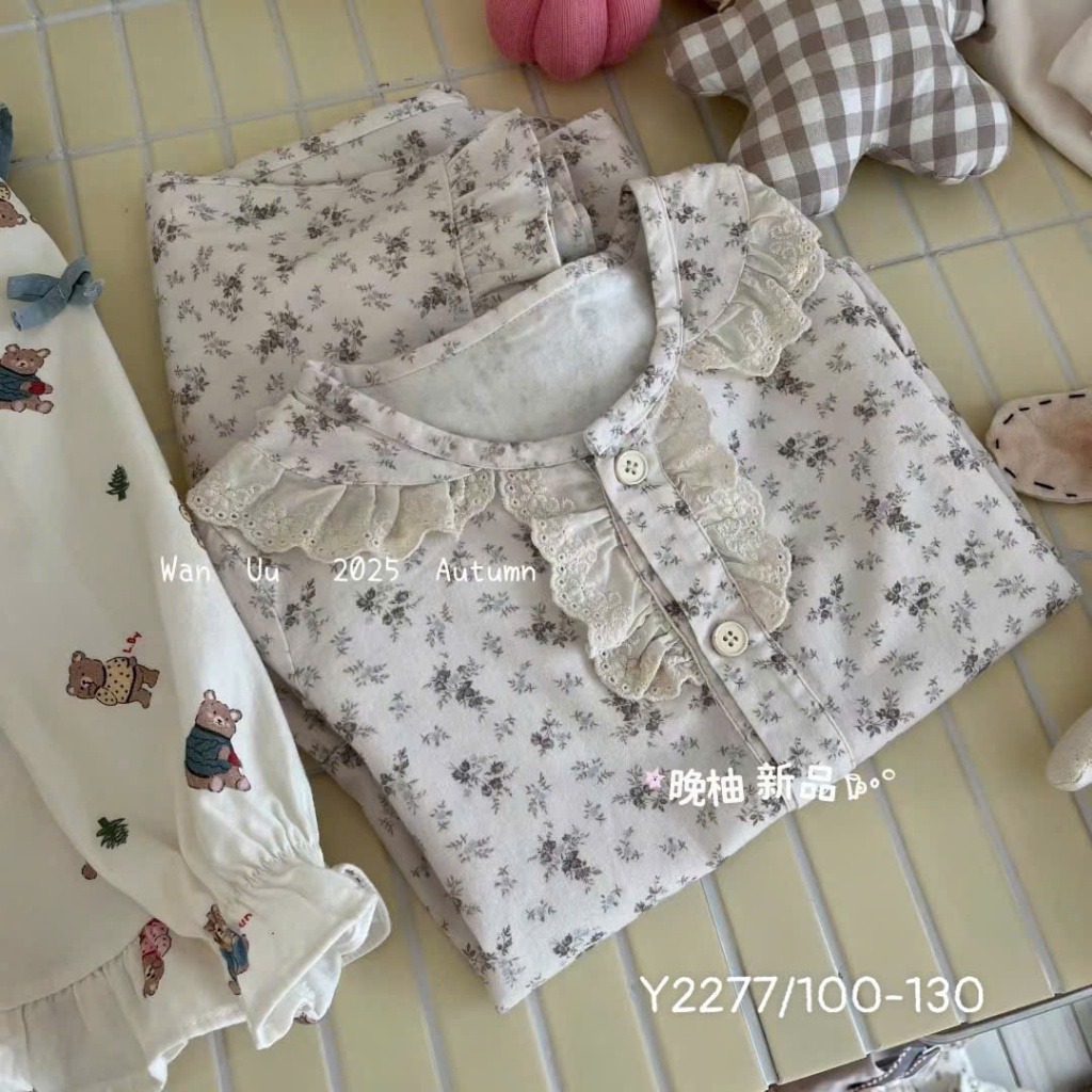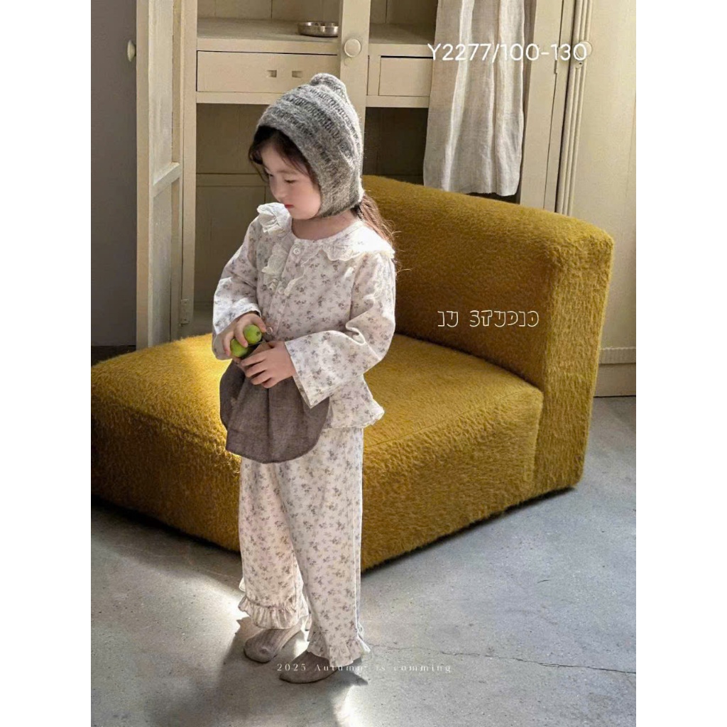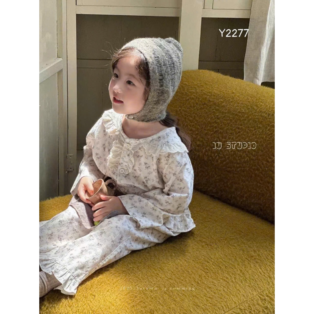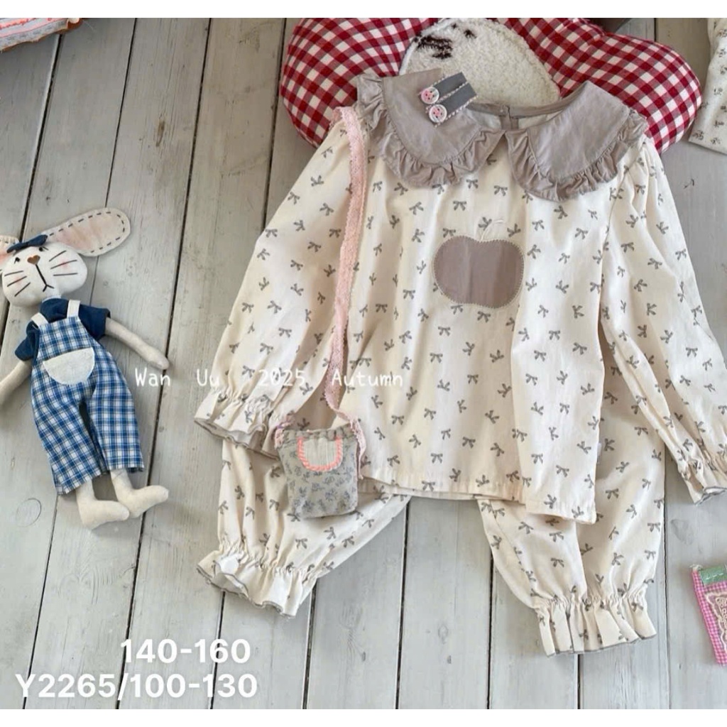[VHH121] Bộ đồ dài tay thu đông cổ bèo WANYOU QCCC loại 1 chất liệu cotton mềm mịn, co giãn, họa tiết vintage cho bé