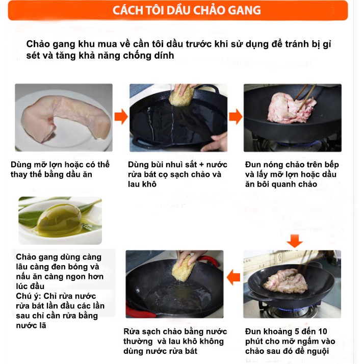 Chảo Gang Cỡ Lớn Size 30cm Đúc Thủ Công Nguyên Khối Tay Cầm Chống Dính Tự Nhiên Dùng Được Bếp Từ