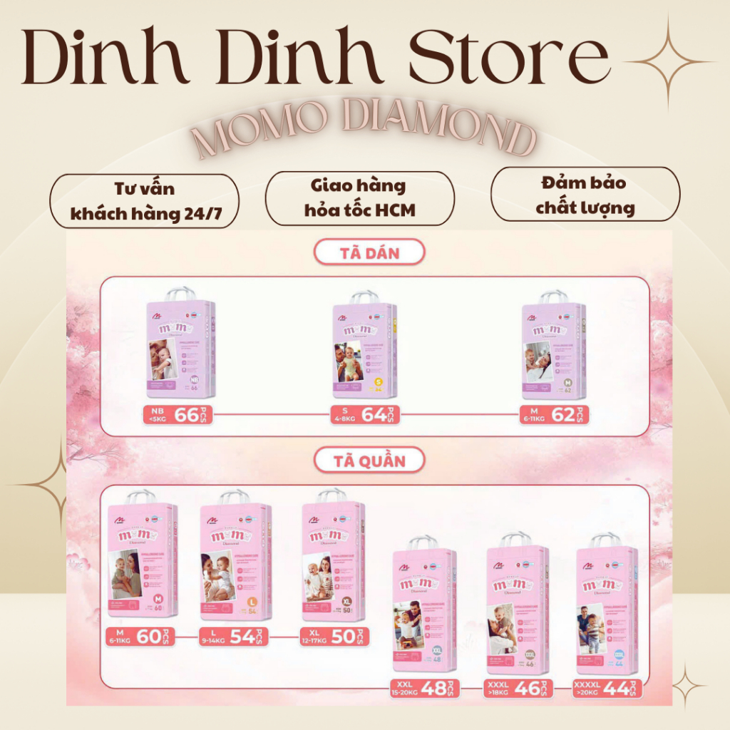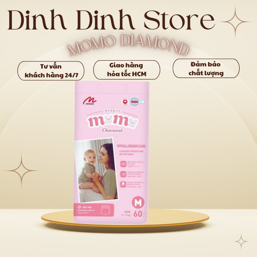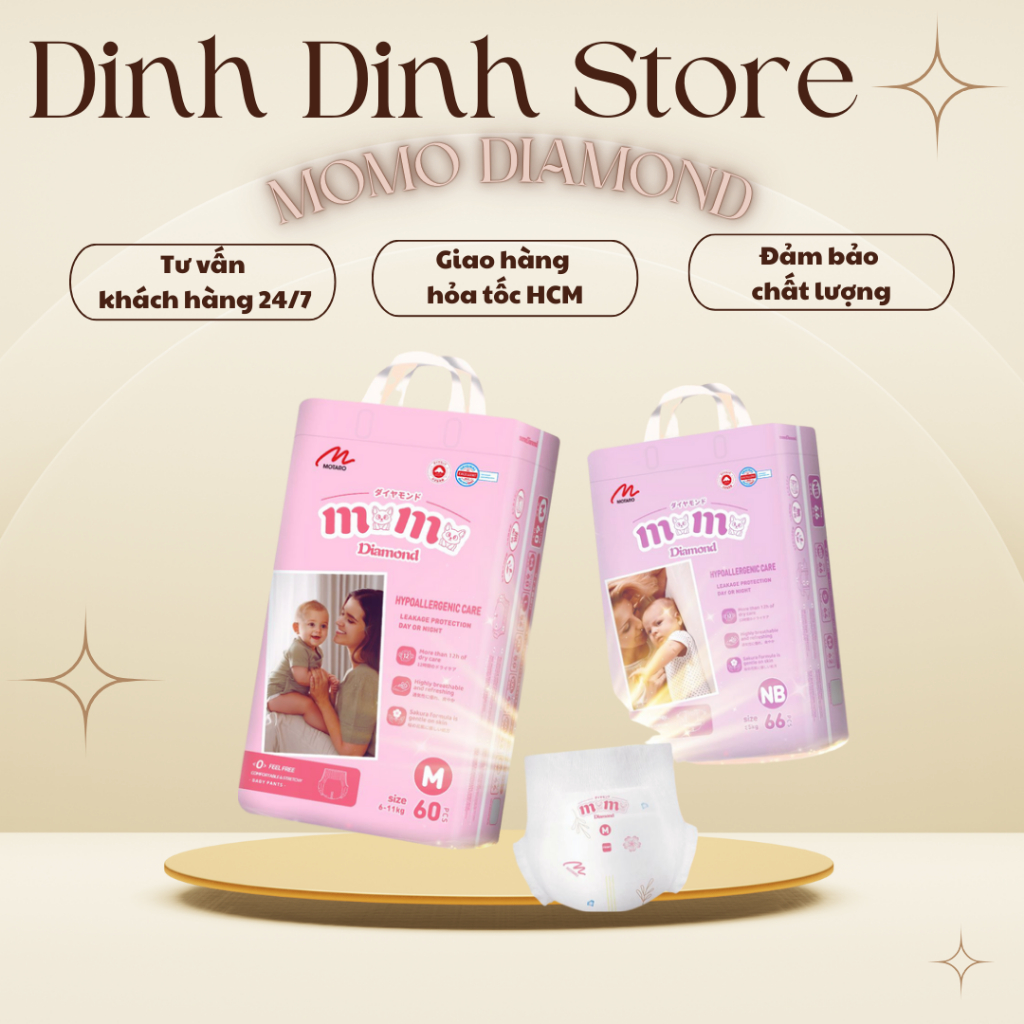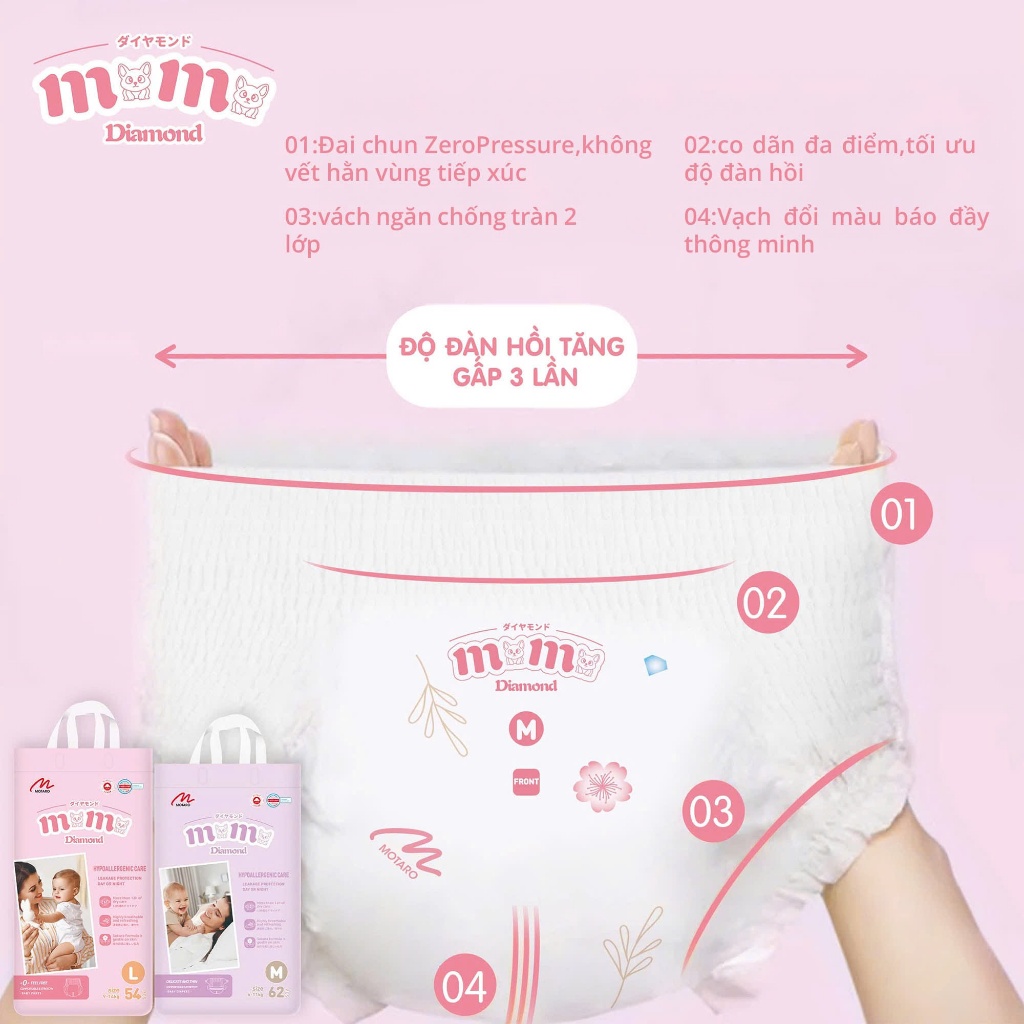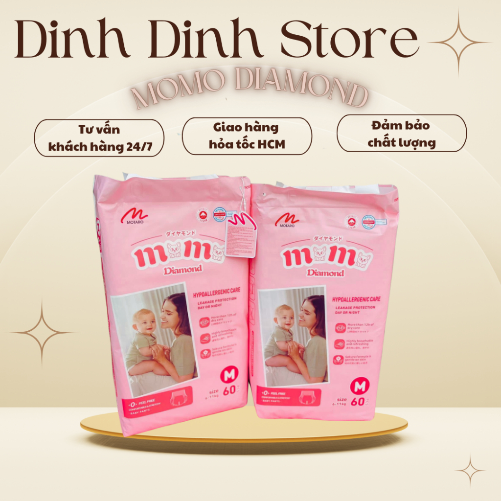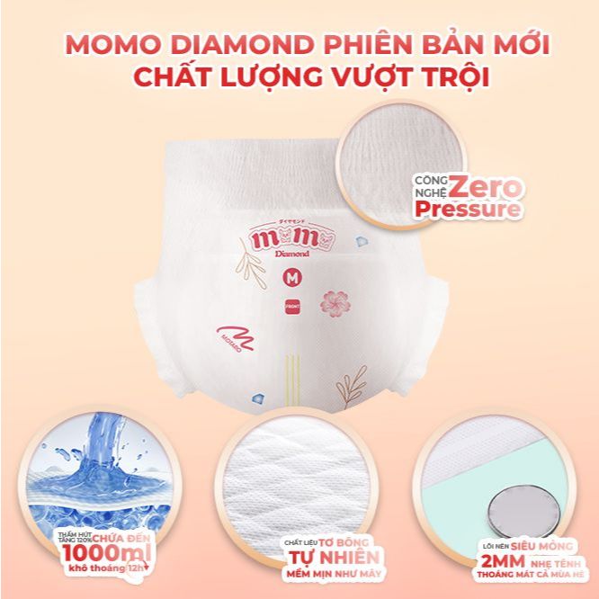 [Lỗi 1 đổi 1] Bỉm Momo Diamond Organic dán/quần S64/M62/M60/L54/XL50/XXL48/XXXL46
