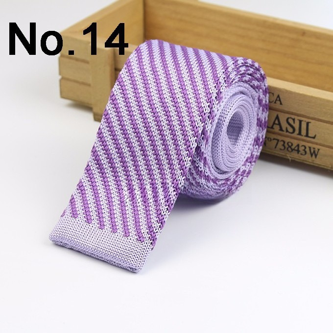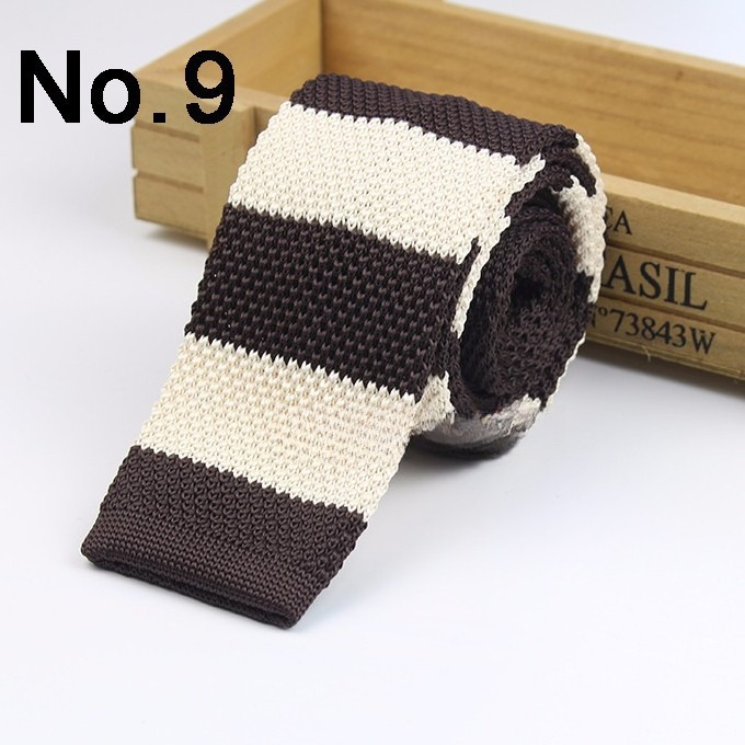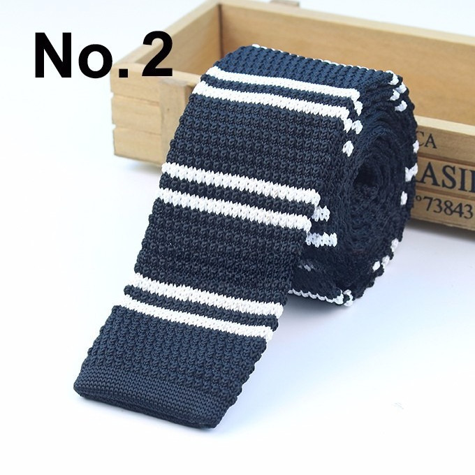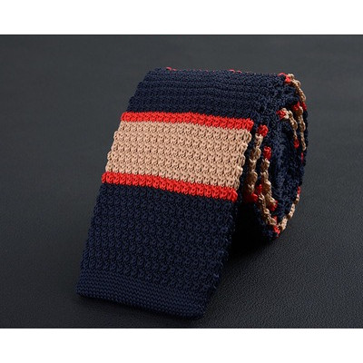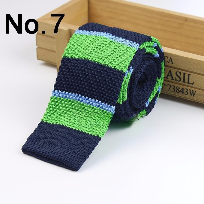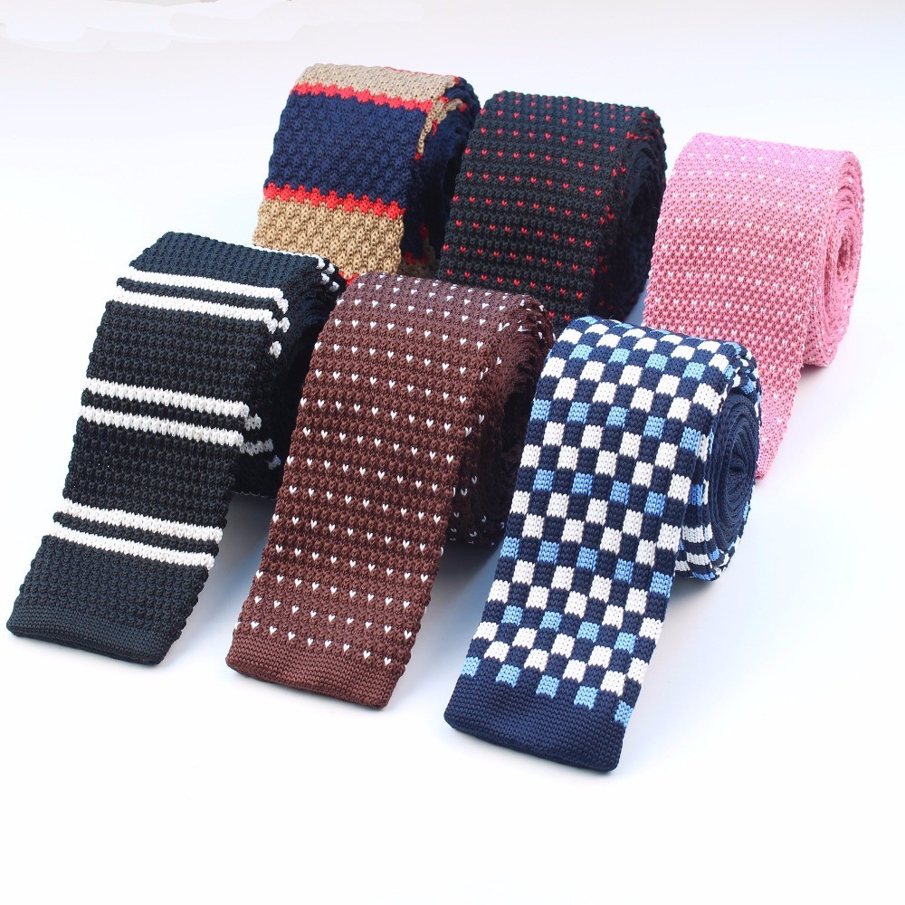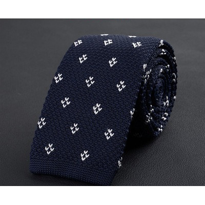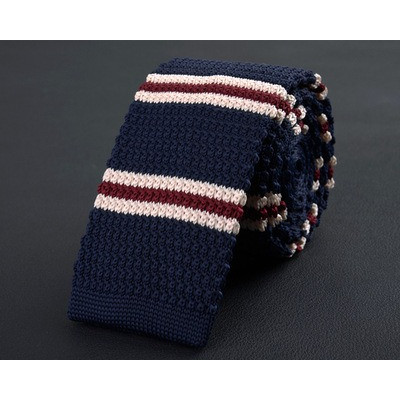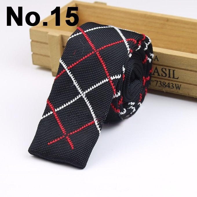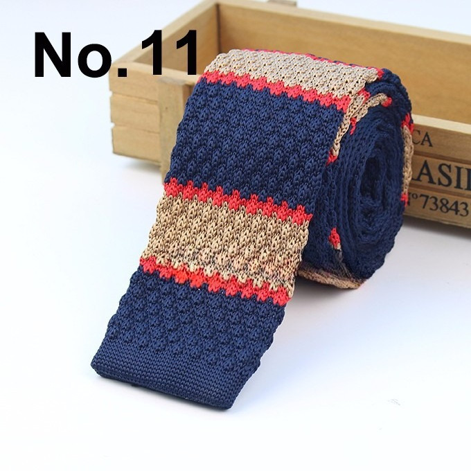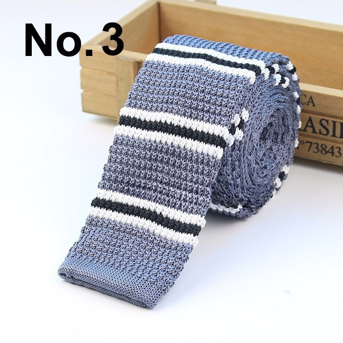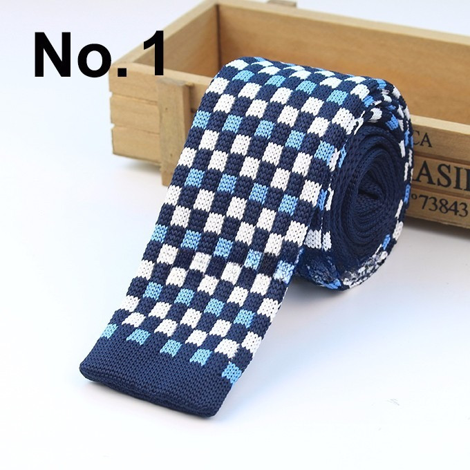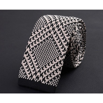 Cà vạt len dệt kim nam tự buộc, đầu phẳng, họa tiết sọc lưới