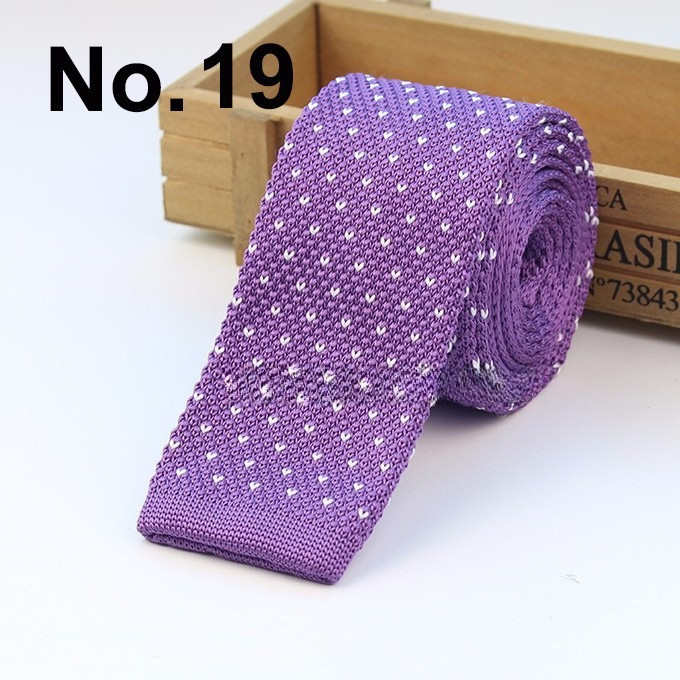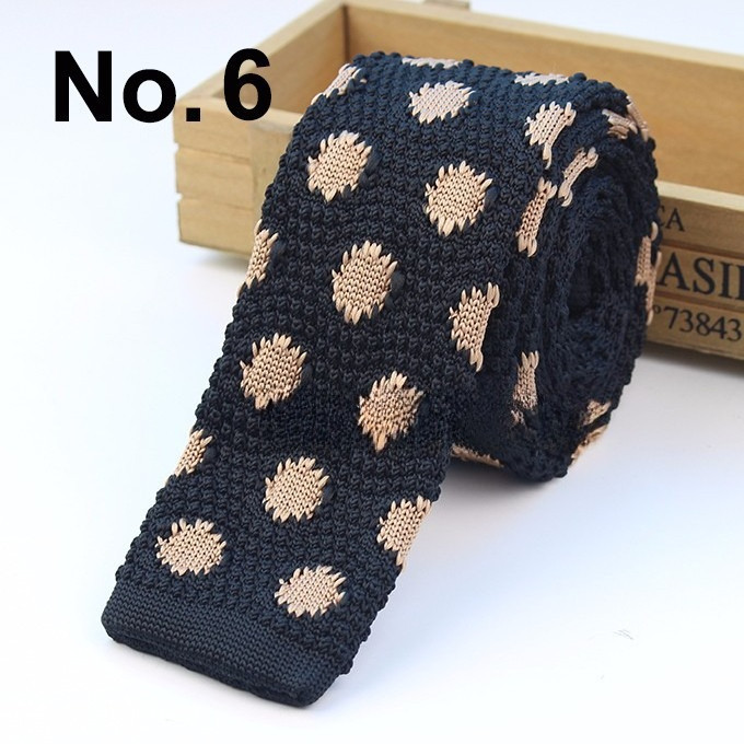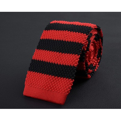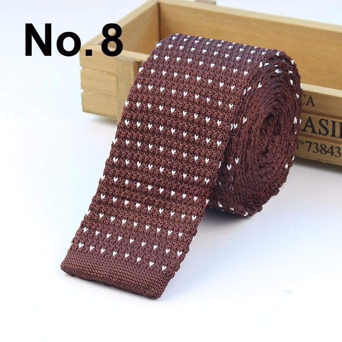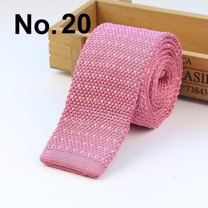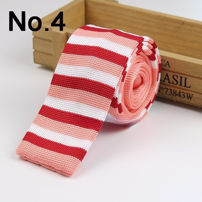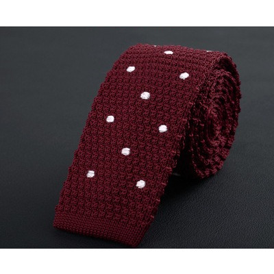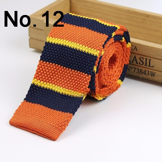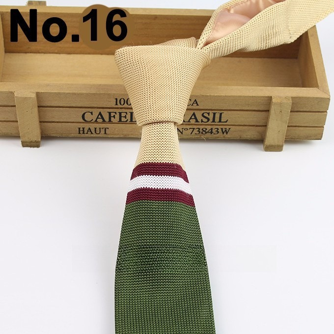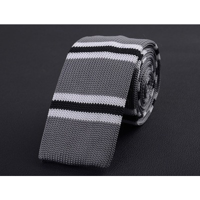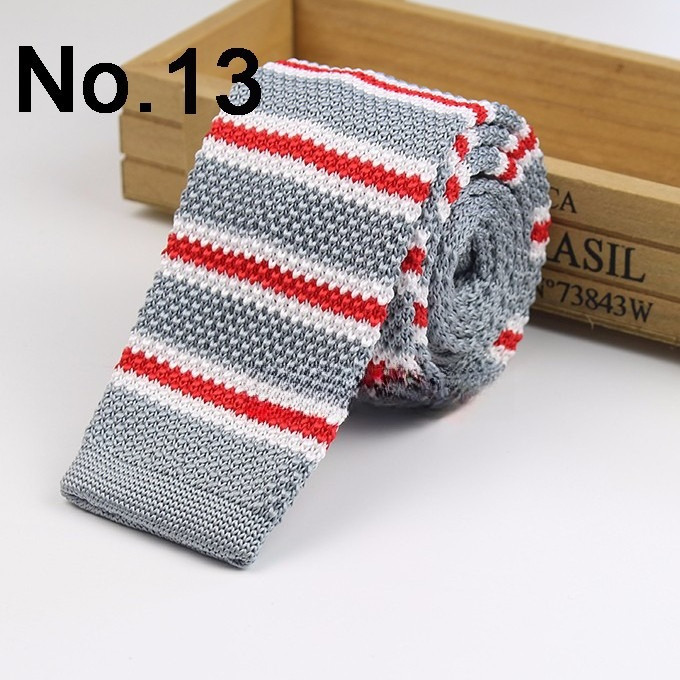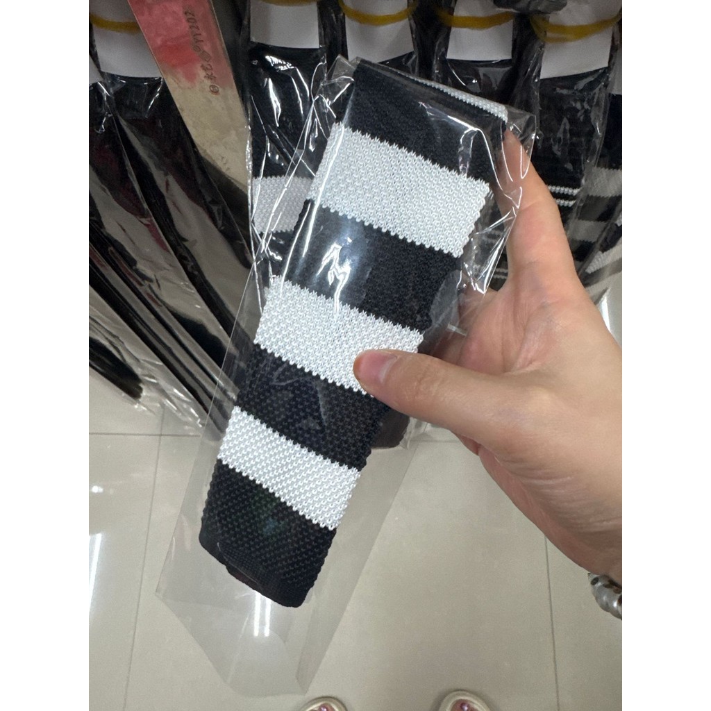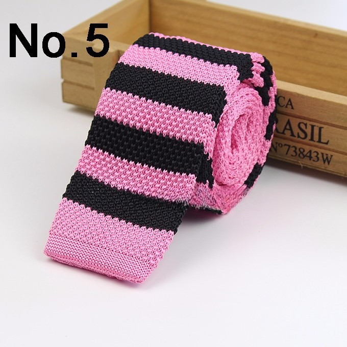Cà vạt len dệt kim nam tự buộc, đầu phẳng, họa tiết sọc lưới