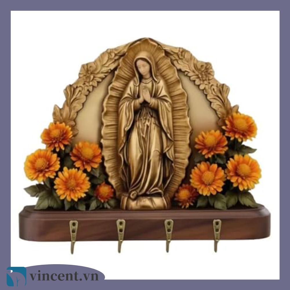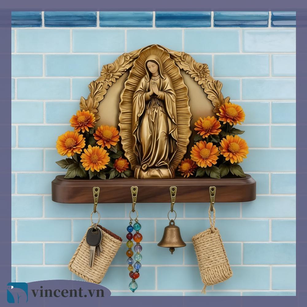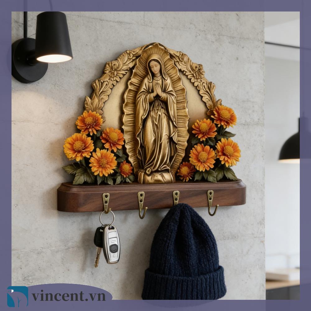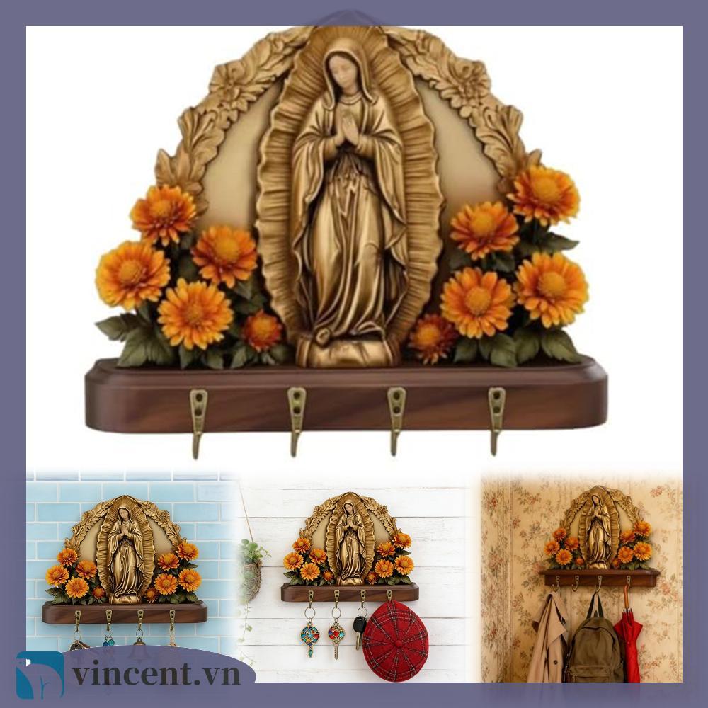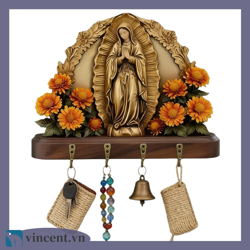 [vincent.vn] Hộp đựng chìa khóa Virgin Mary phẳng 2D kèm 4 móc treo tường cho lối vào
